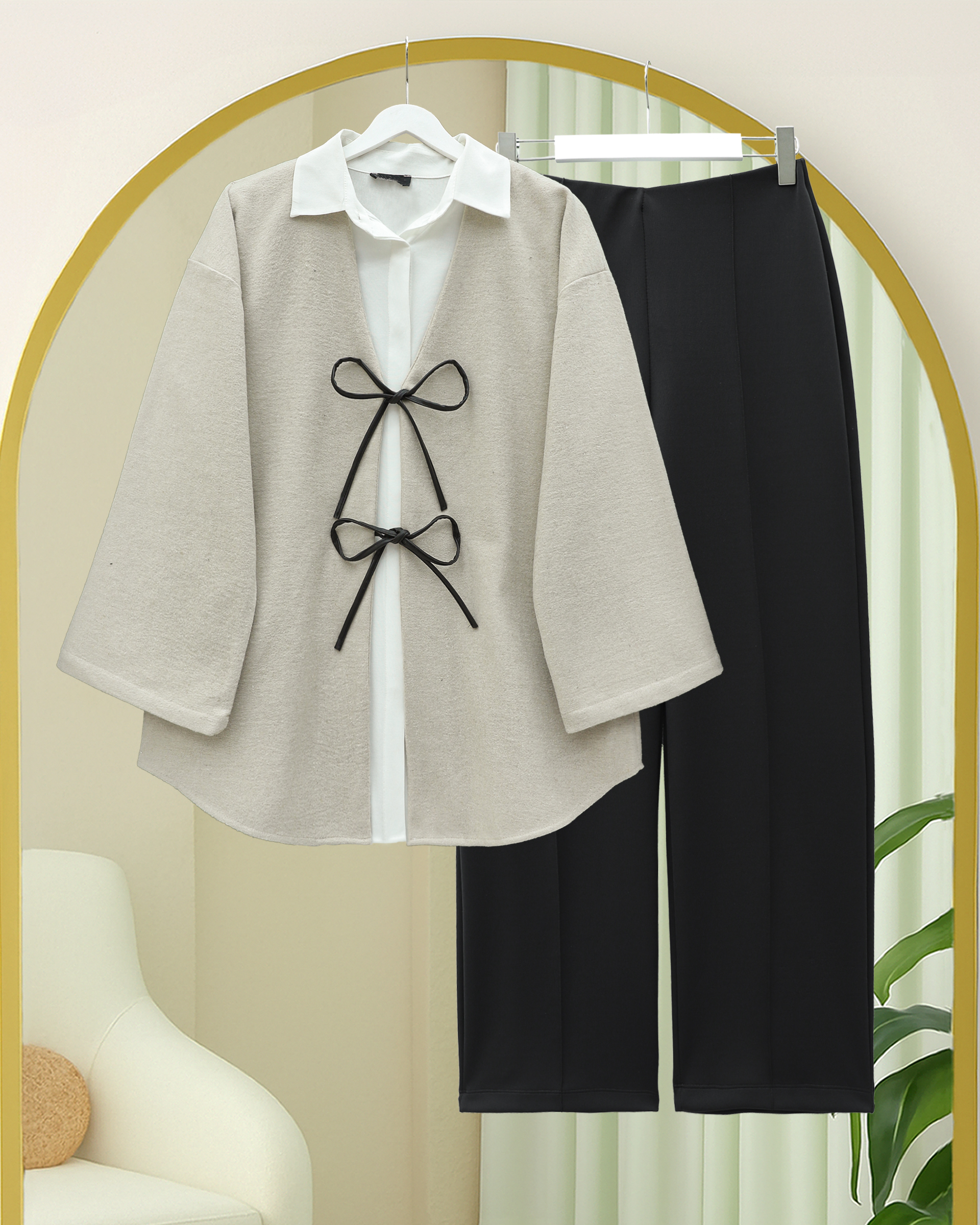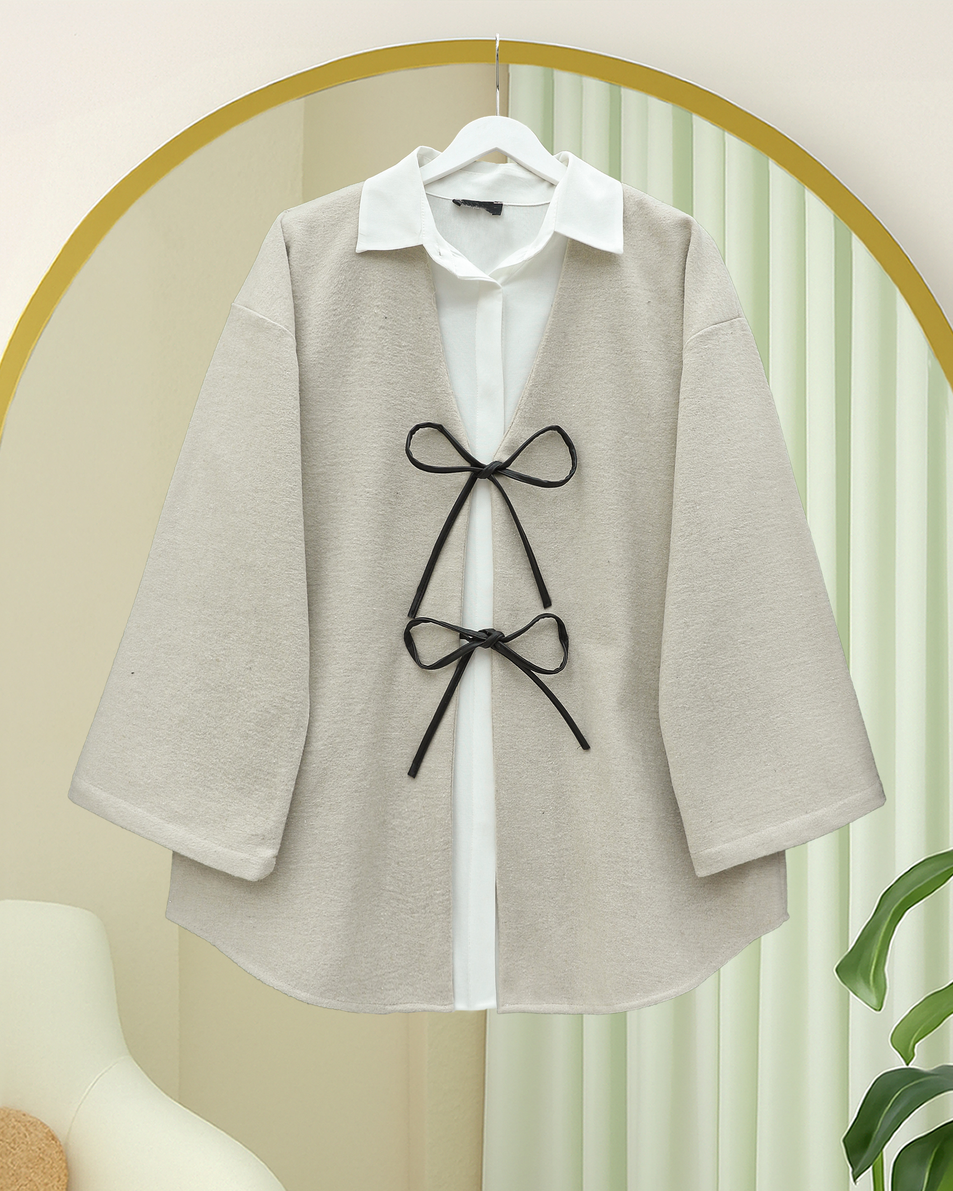 Önü Bağcıklı Oval Kesim Kaşe Kimono -Taş-Taş