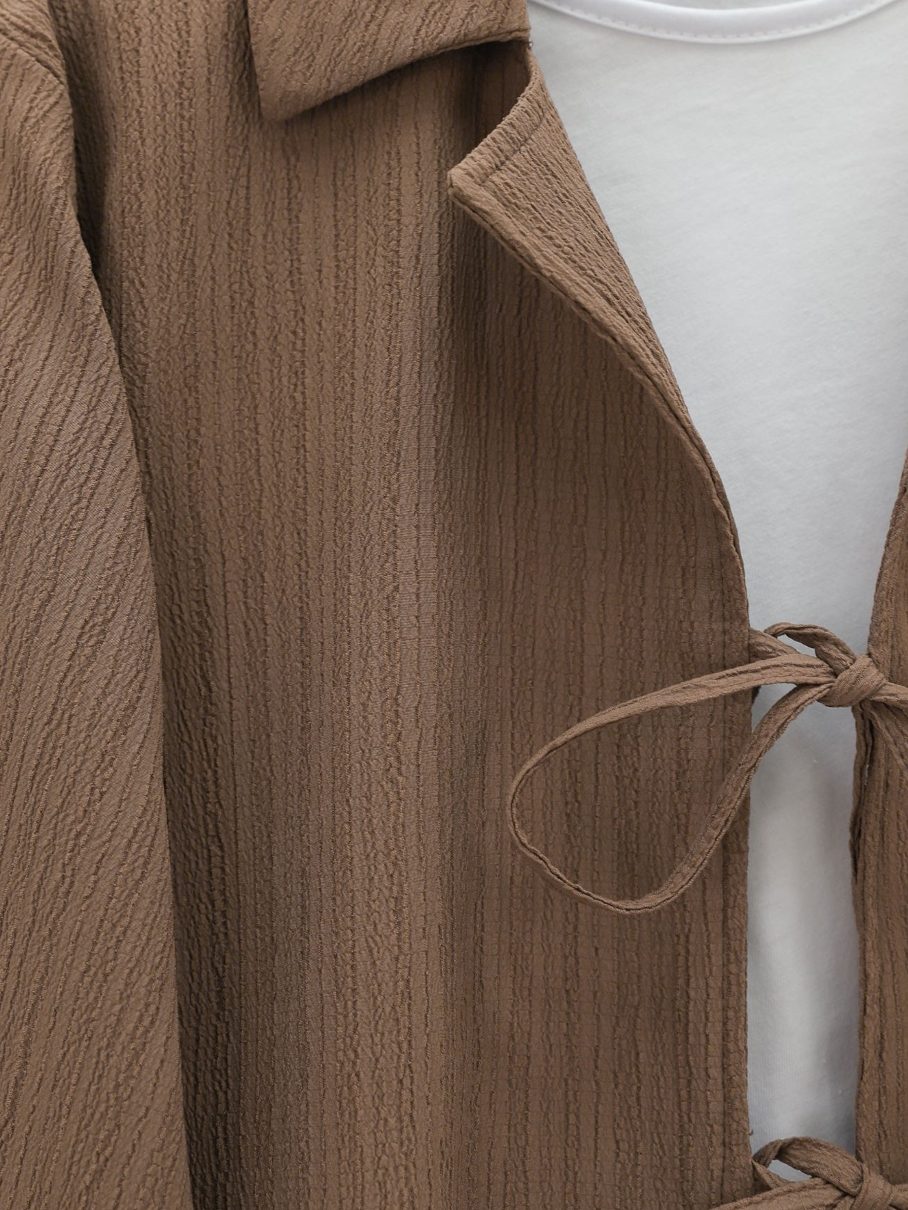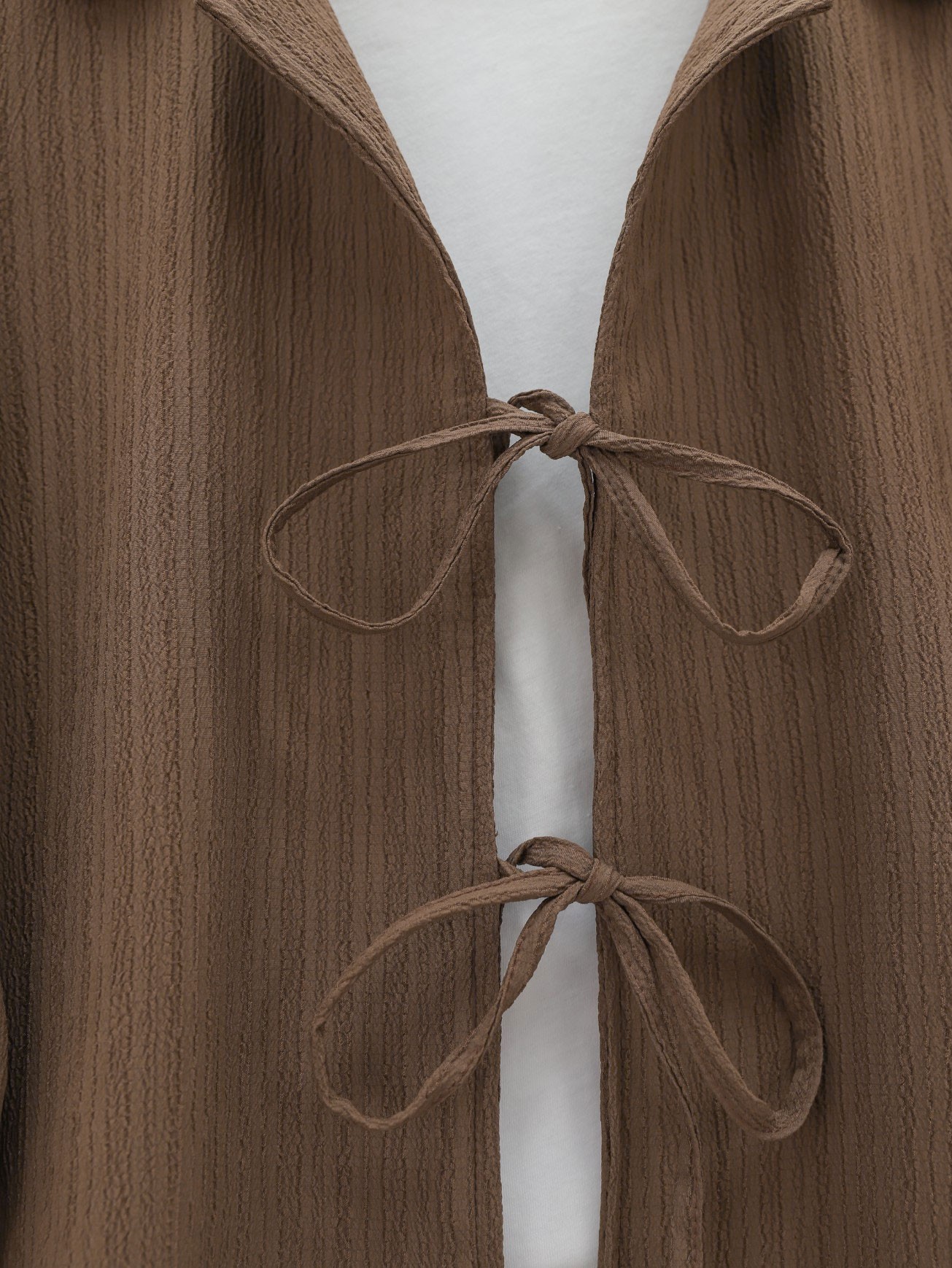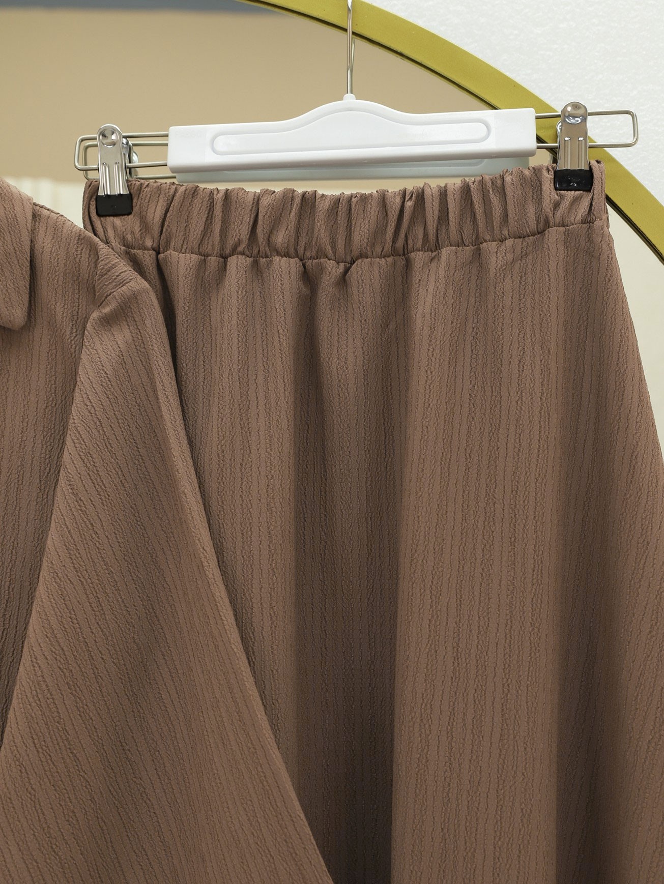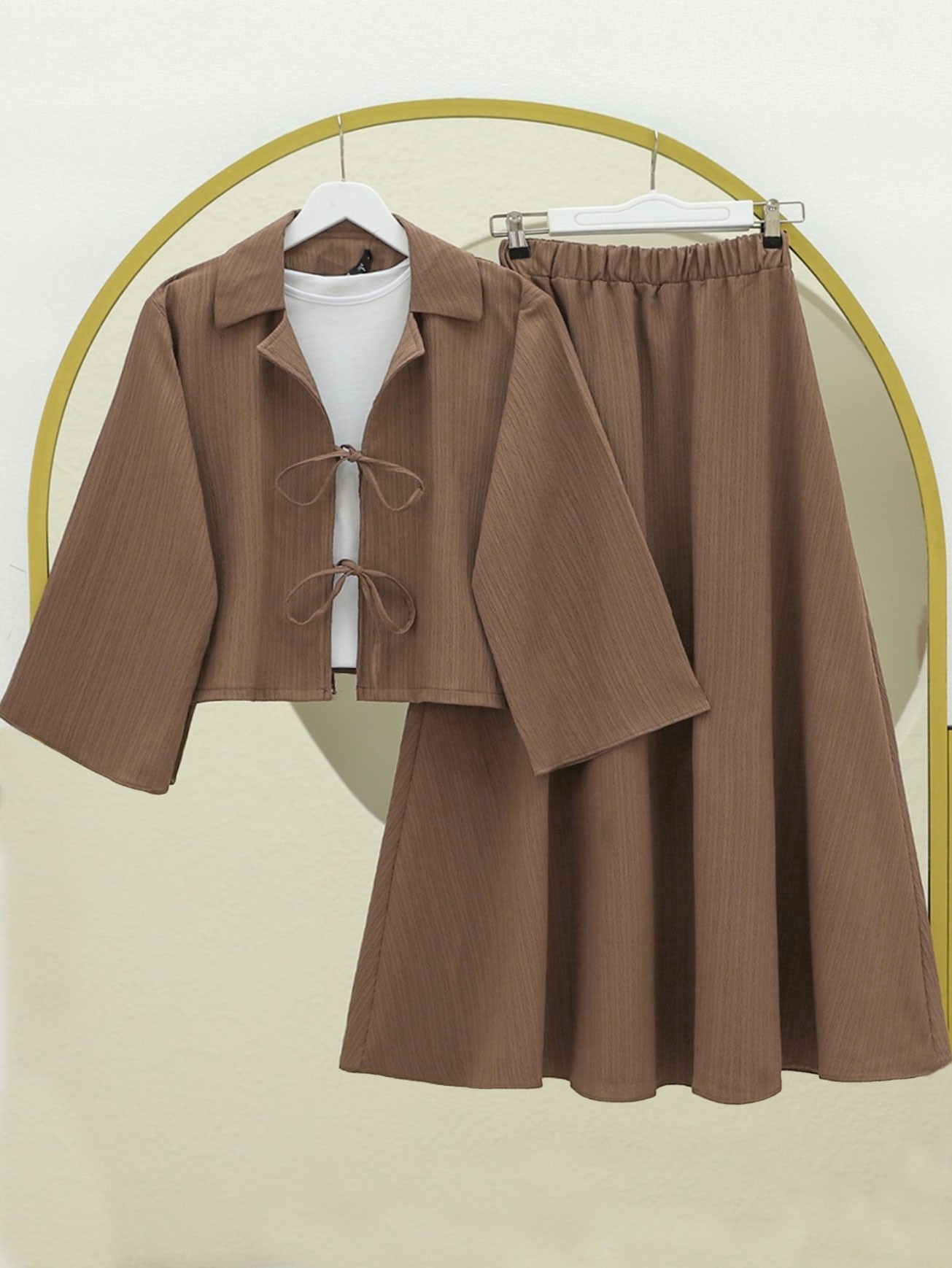 Önü Bağlamalı Etekli Krinkıl Takım -Kahve-Kahve