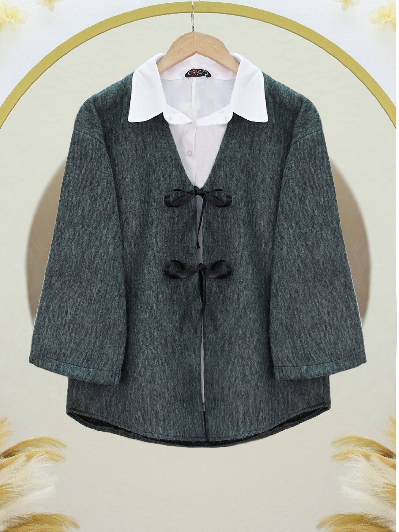 Önü Bağlamalı Kaşe Ceket -Zümrüt-Zümrüt