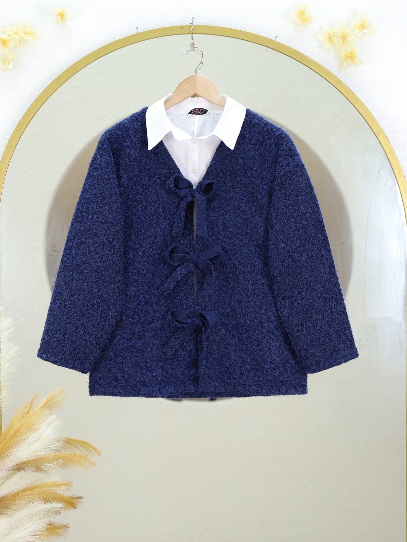 Önü Bağlamalı Kırçıllı Kaşe Ceket -Laci-Lacivert
