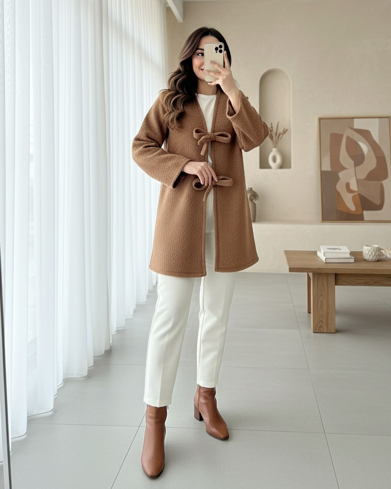 Önü Bağlamalı Sakallı Kimono -Vizon-Vizon