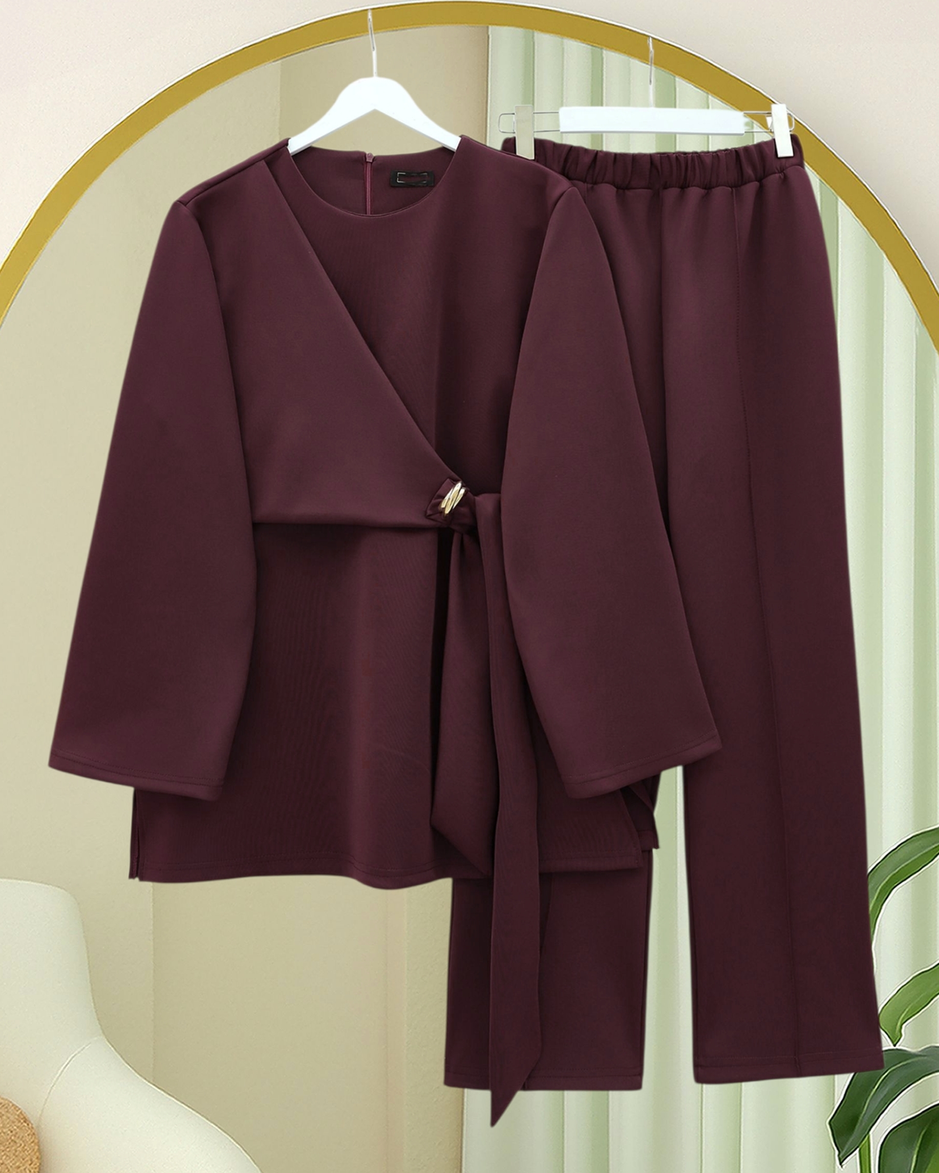 Önü Çapraz Bağlamalı Yırtmaçlı Scuba Takım -Bordo-Bordo