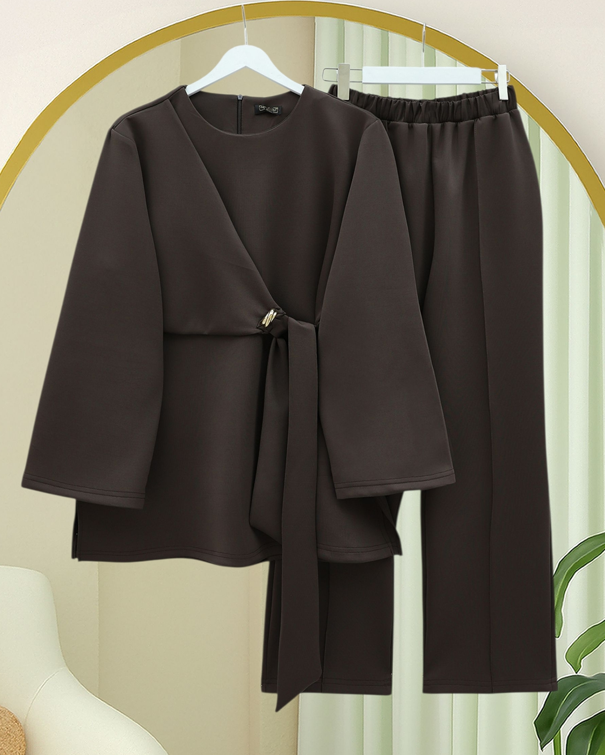 Önü Çapraz Bağlamalı Yırtmaçlı Scuba Takım -K. Kahve-K. Kahve
