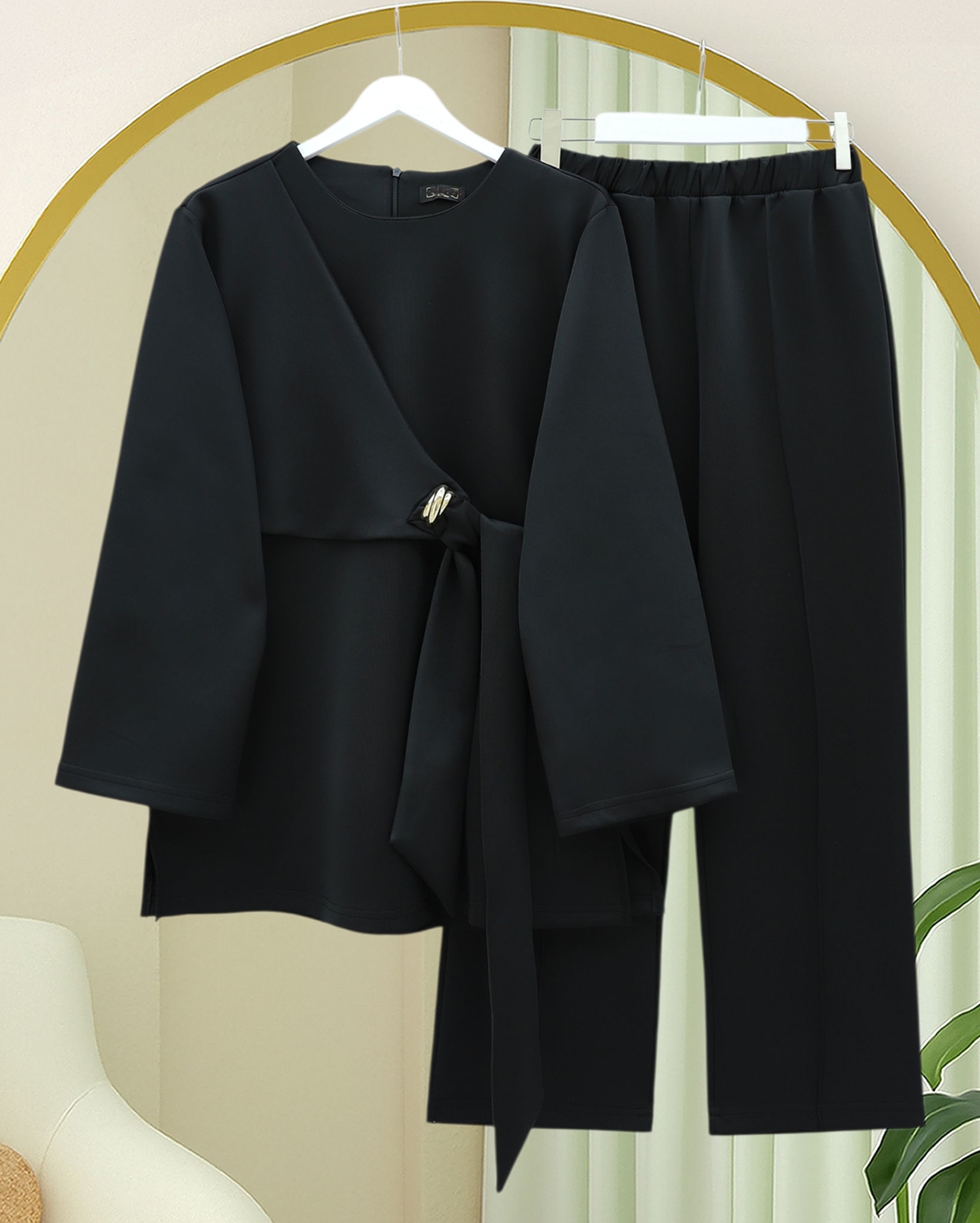 Önü Çapraz Bağlamalı Yırtmaçlı Scuba Takım -Siyah-siyah