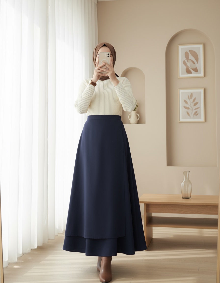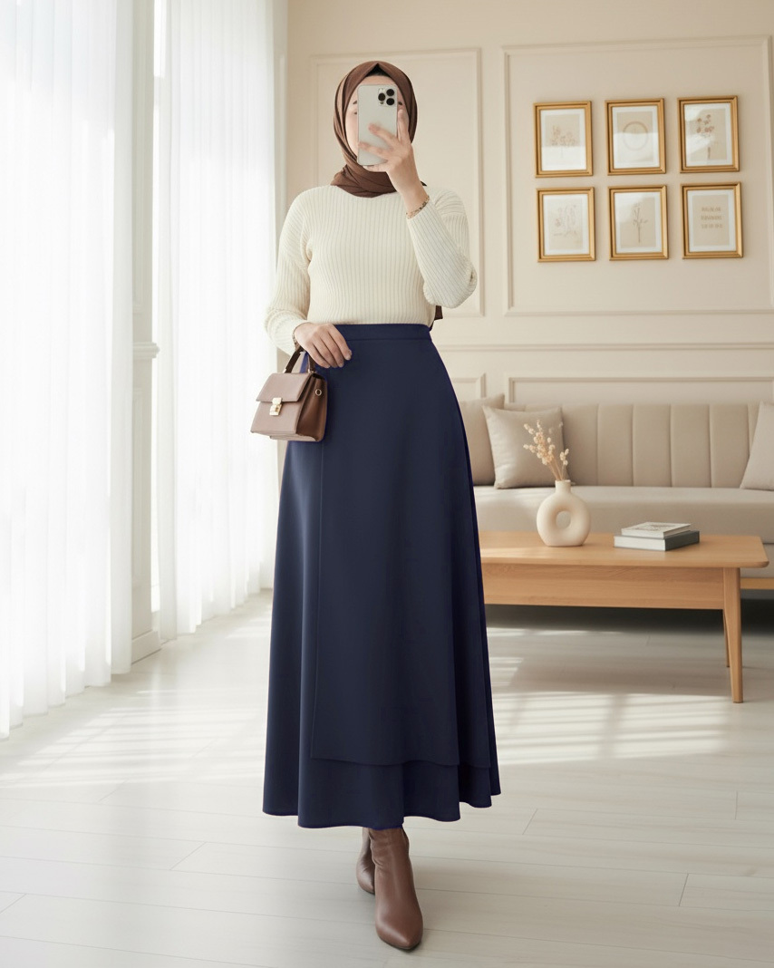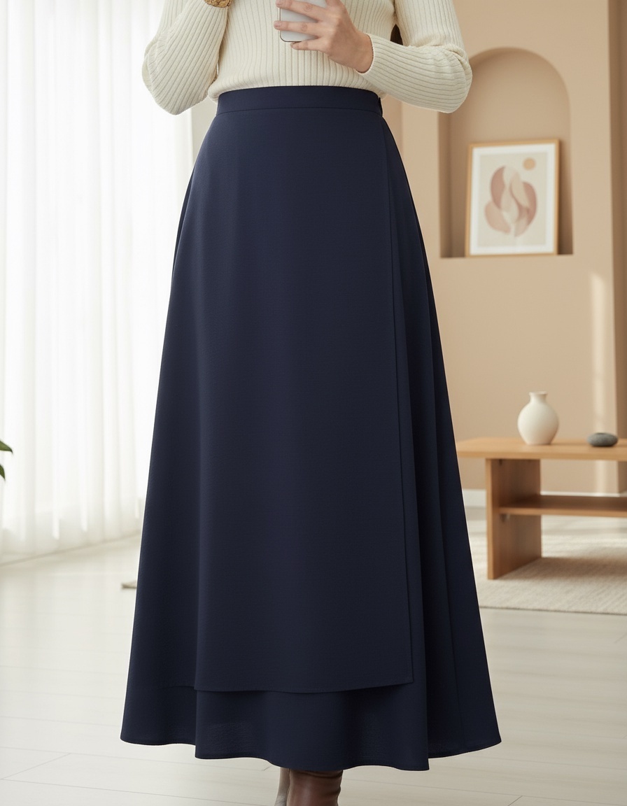 Önü Çapraz Çift Katlı Scuba Etek -Laci-Lacivert