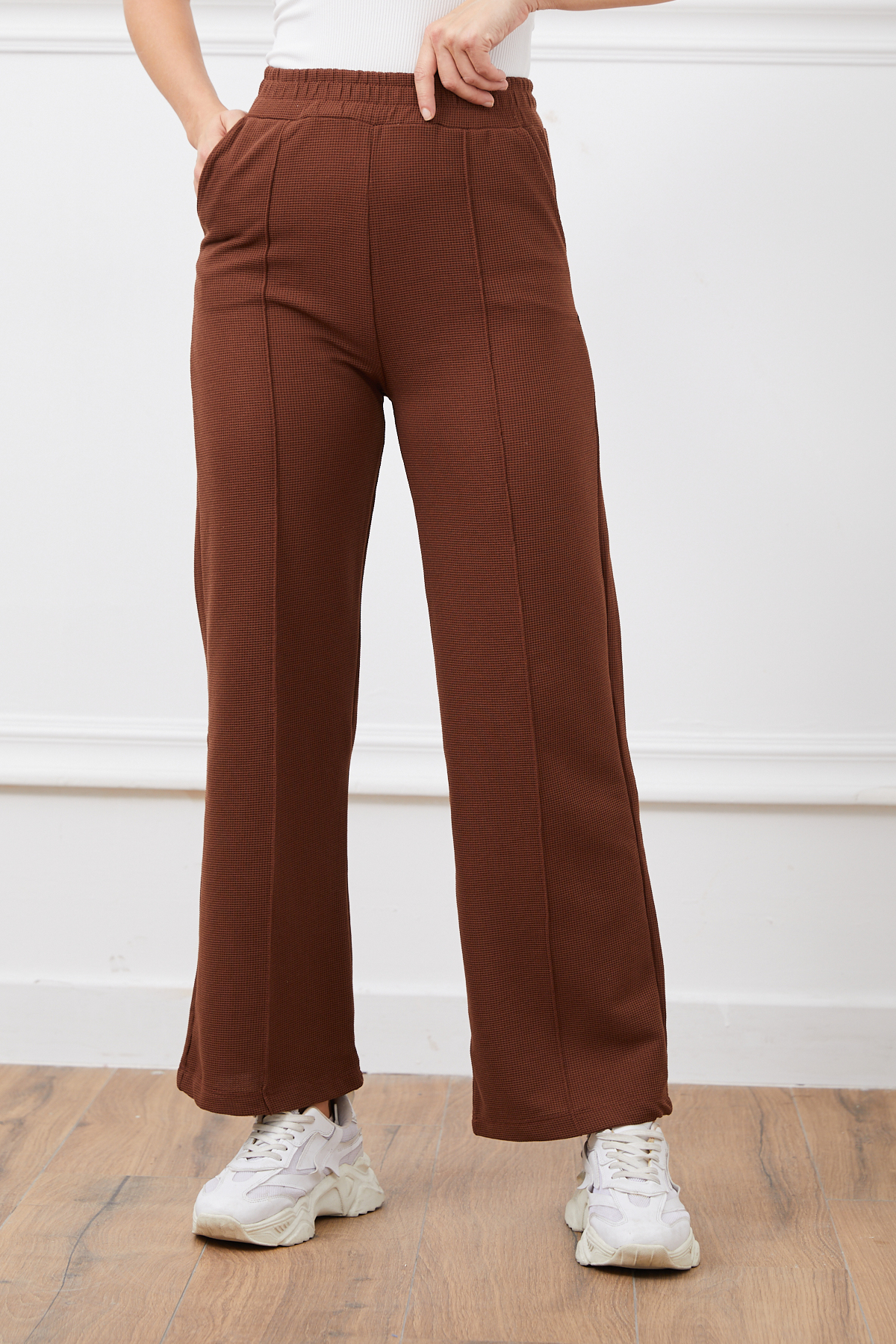 Önü Çimalı Pantolon-Kahve