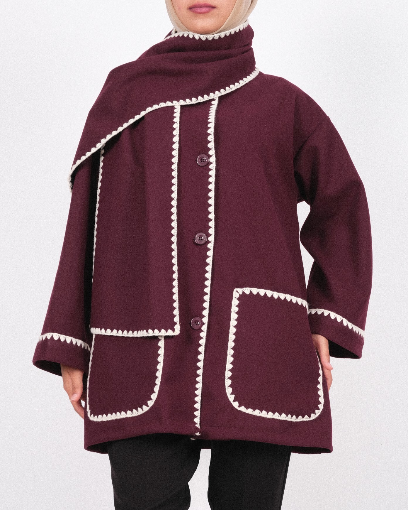 Önü Düğmeli Atkılı Cepli Ceket -Bordo-Bordo