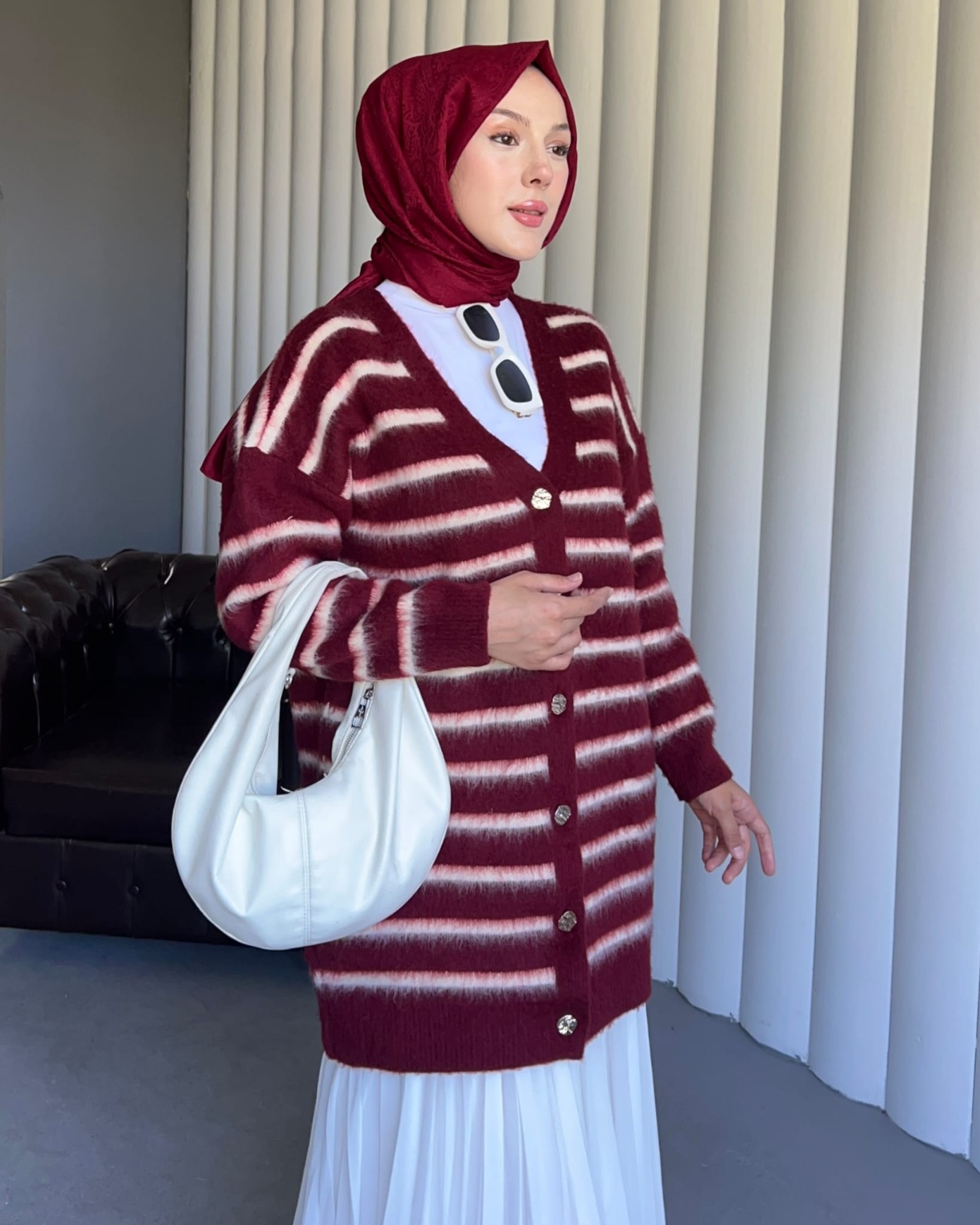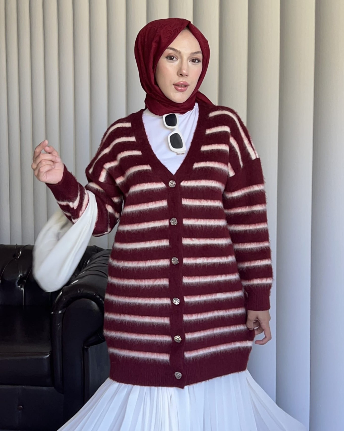 Önü Düğmeli Sakallı Araboy Triko Hırka -Bordo-Bordo