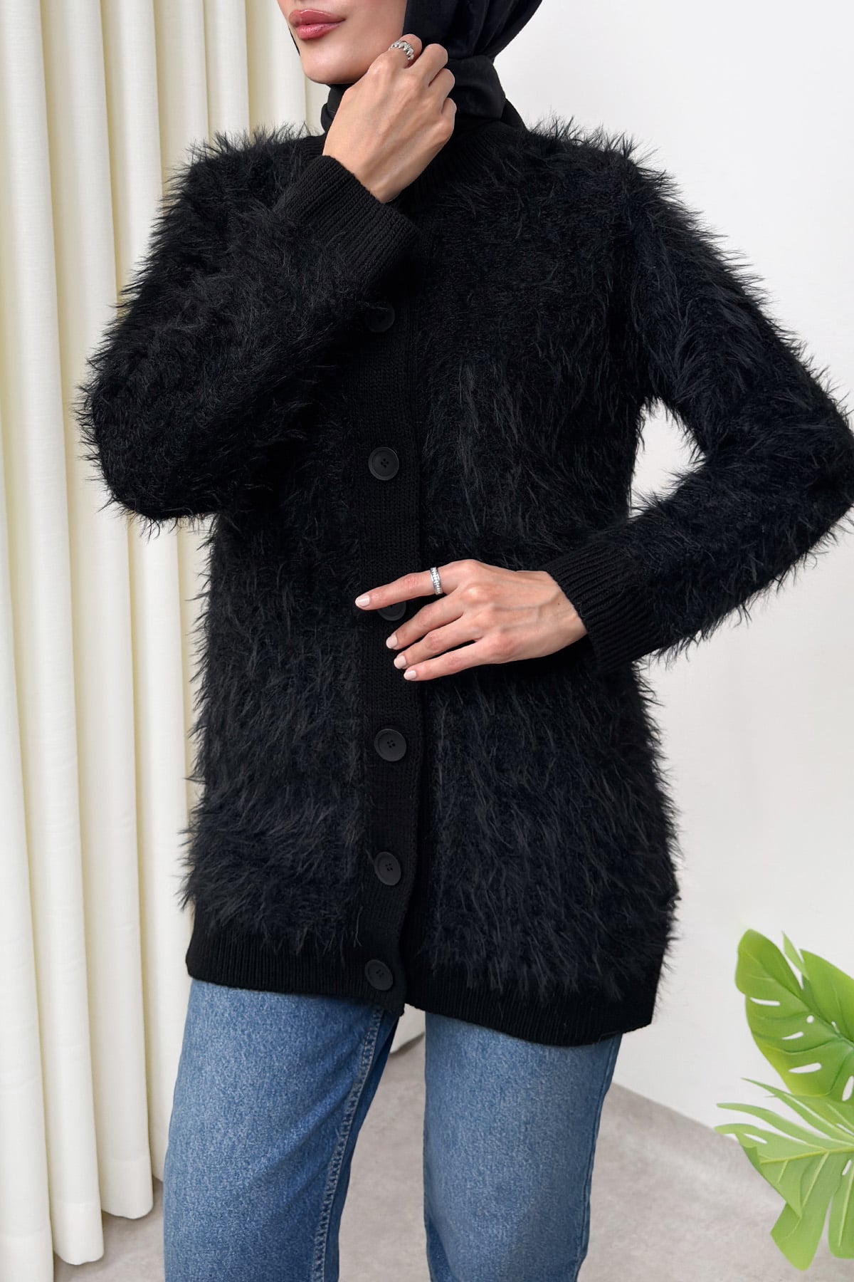 Önü Düğmeli Triko Hırka Siyah-Siyah