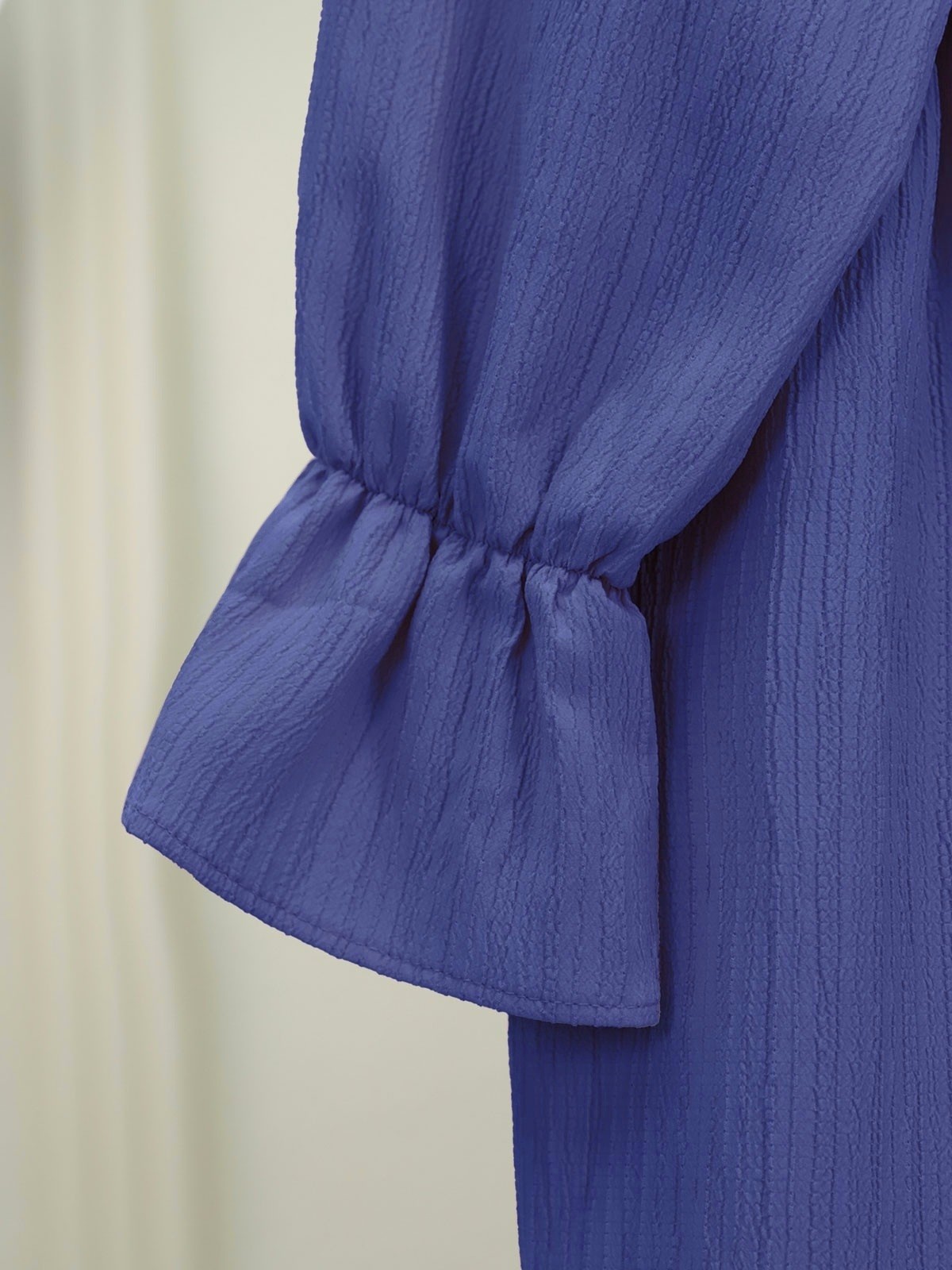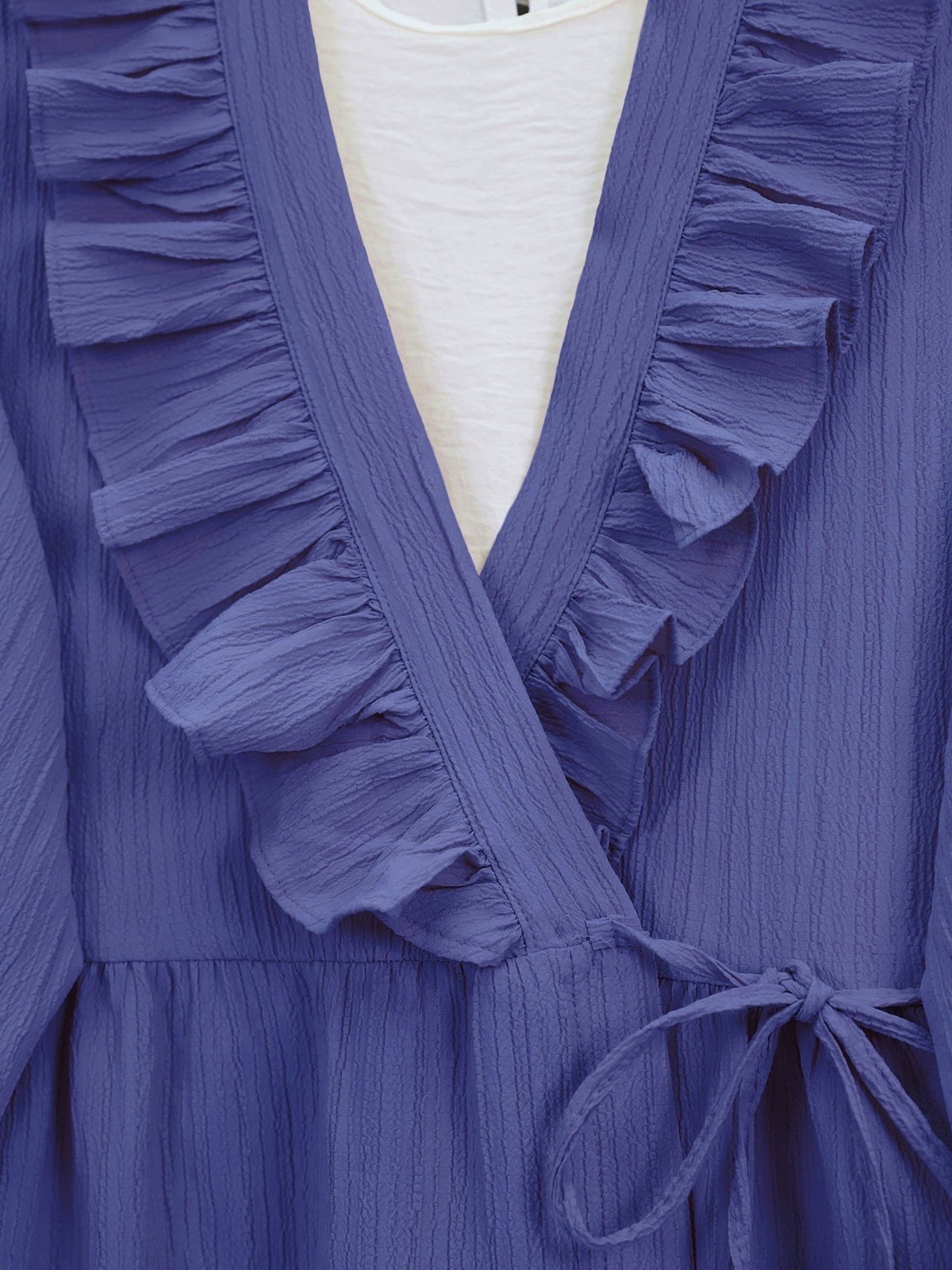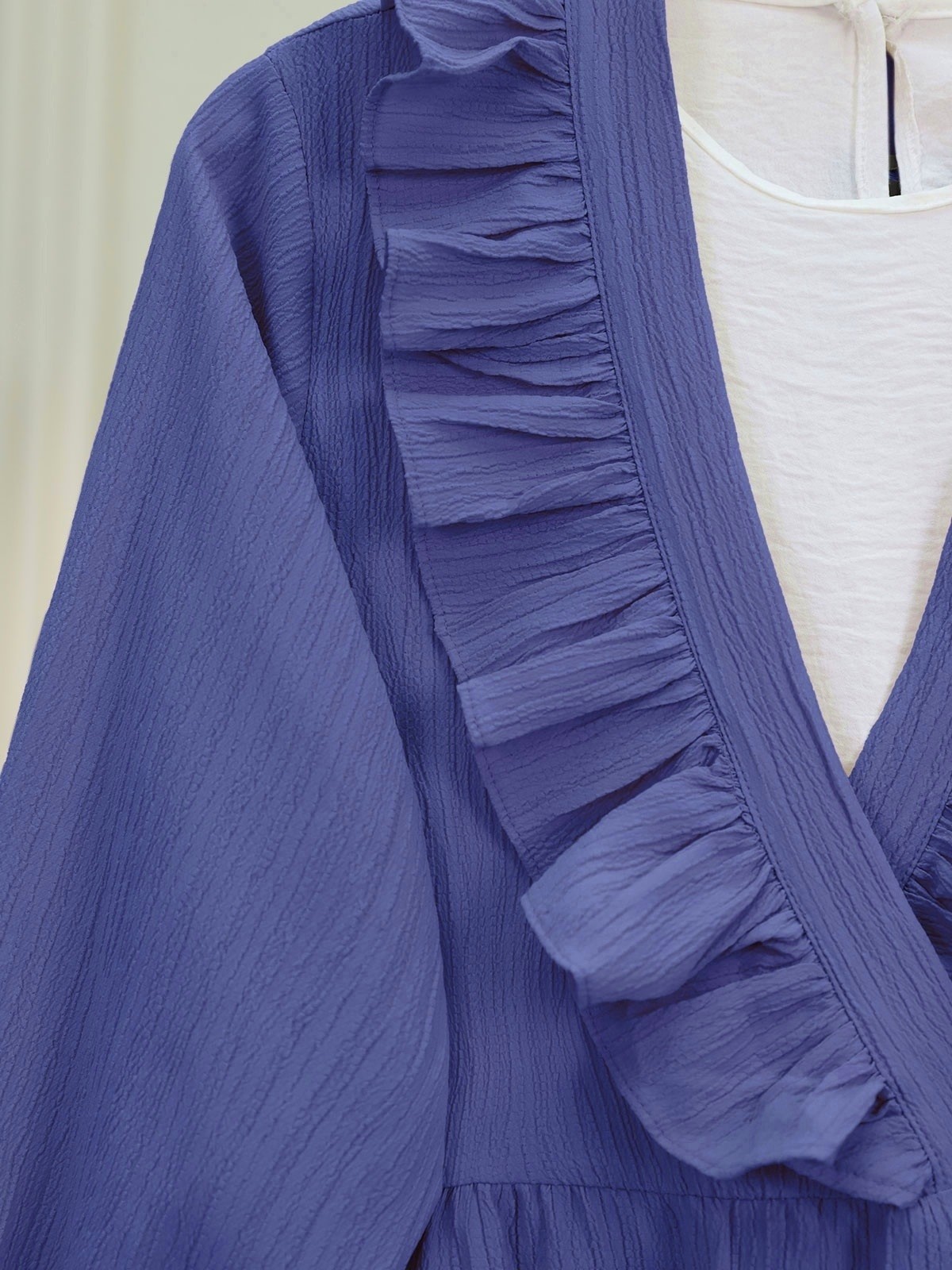 Önü Fırfırlı Bağlamalı Krinkıl Kimono -Mavi-Mavi