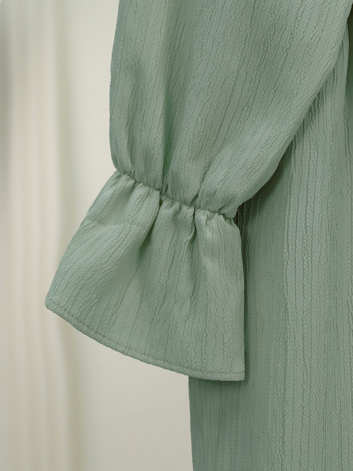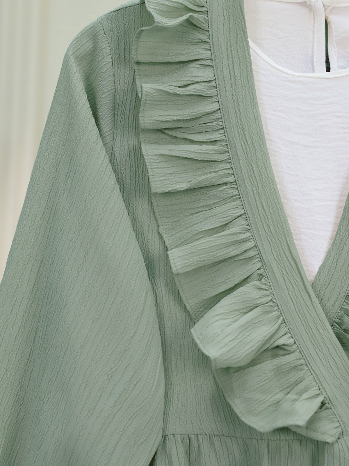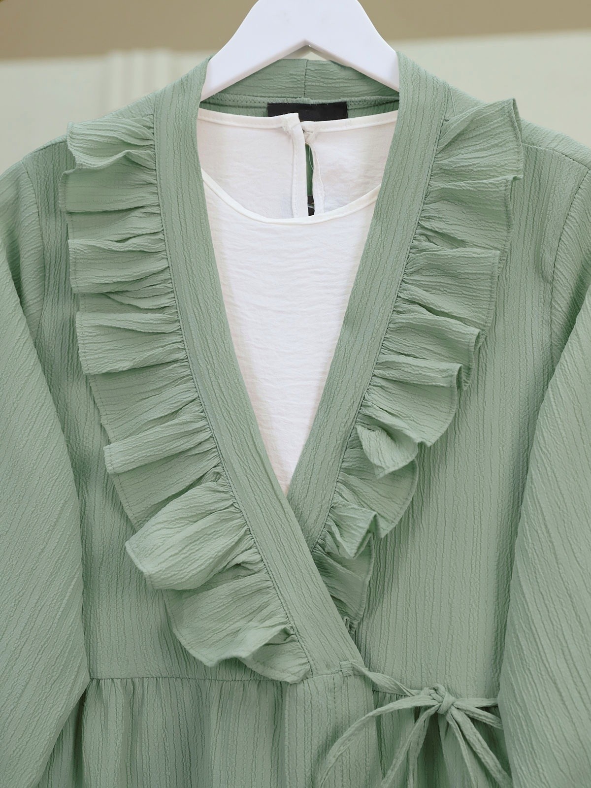 Önü Fırfırlı Bağlamalı Krinkıl Kimono -Mint-Mint