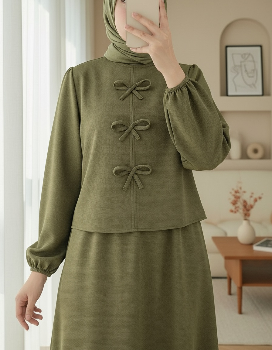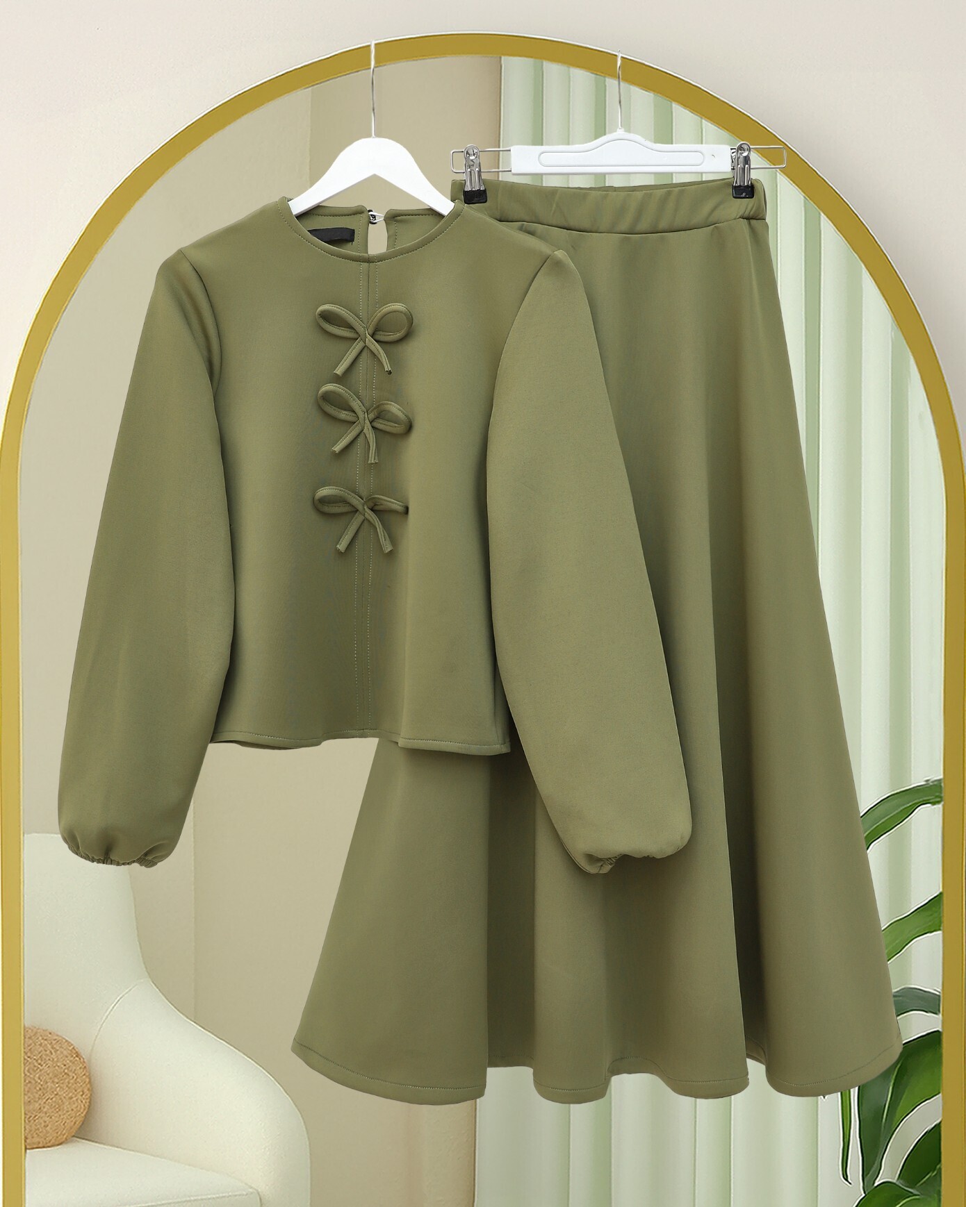 Önü Fiyonk Detaylı Etekli Scuba Takım -Haki-Haki