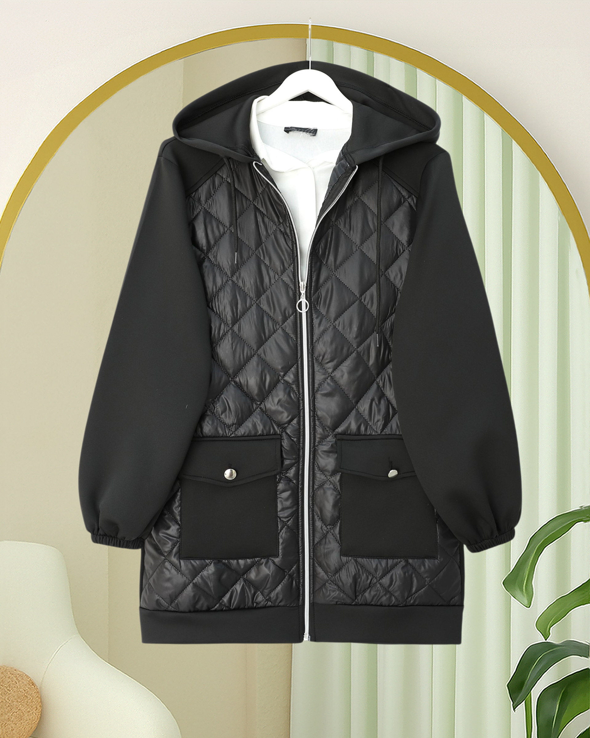Önü Kapitone Detaylı Kapşonlu Cepli Scuba Sweat -Siyah-siyah