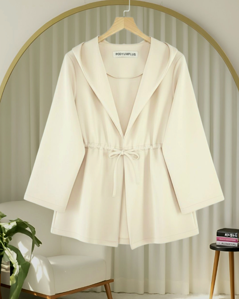 Önü Tünel Bağcıklı Scuba Kimono -Bej-Bej