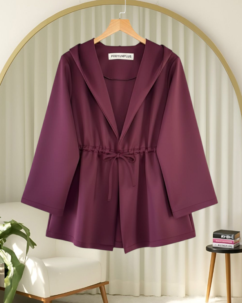 Önü Tünel Bağcıklı Scuba Kimono -Bordo-Bordo