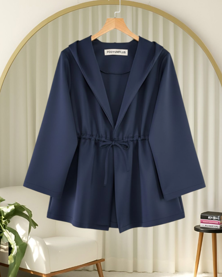 Önü Tünel Bağcıklı Scuba Kimono -Laci-Lacivert