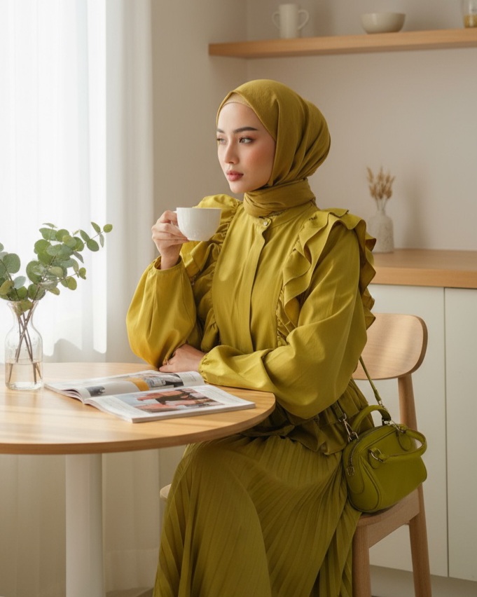 Önü Ve Eteği Fırfırlı Beli Lastikli Gömlek -Yağ Yeşili-Yağ Yeşili