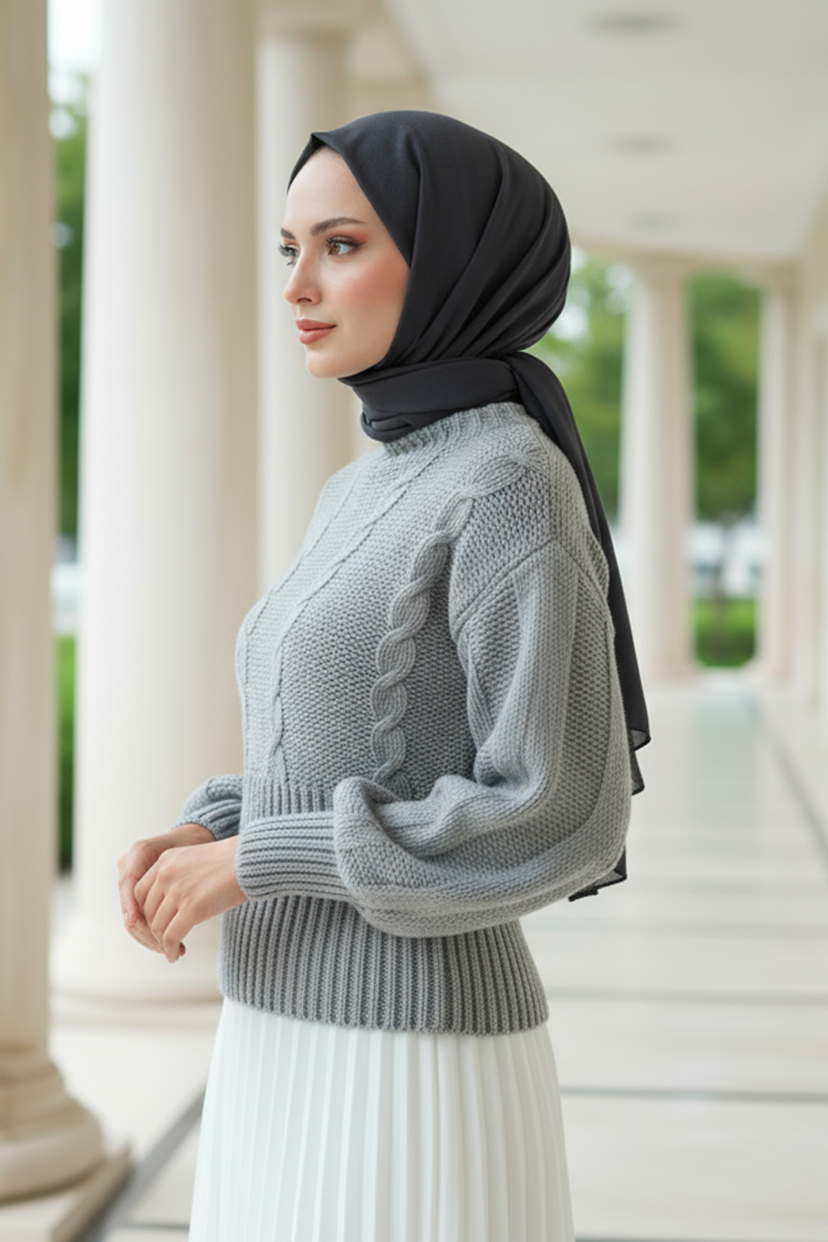Örgü Desenli Kazak KZ-00174 - GRİ-Gri