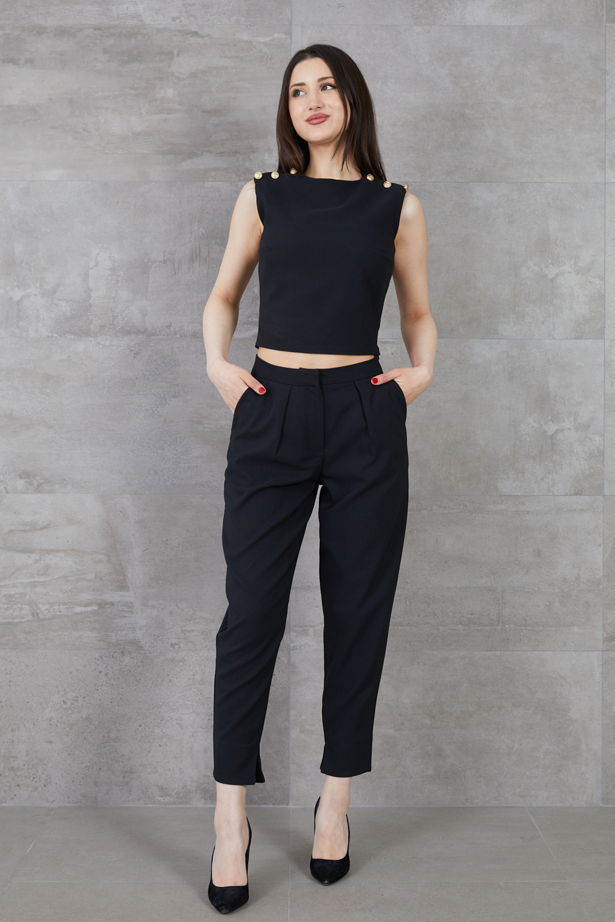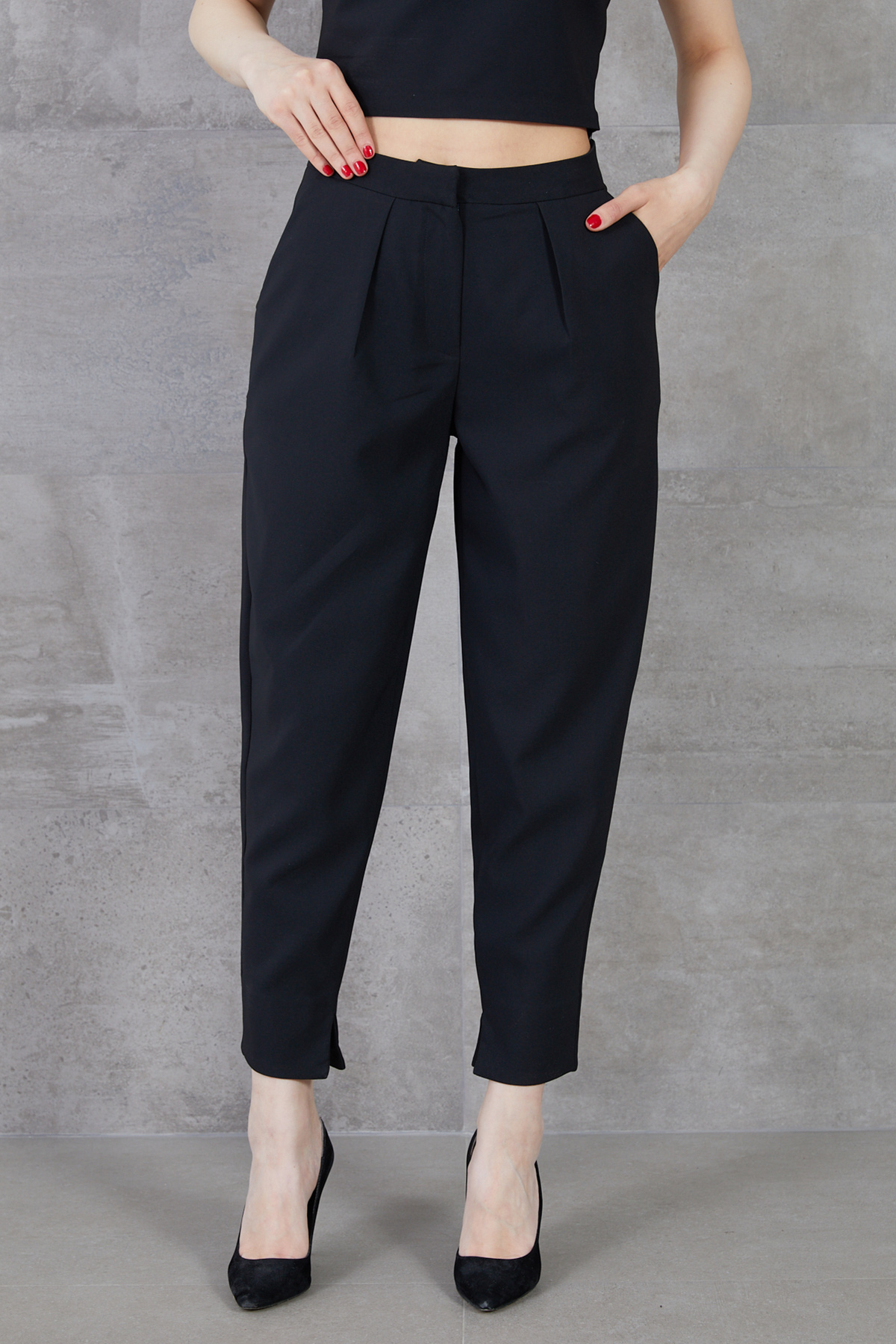 Paçası Yırtmaçlı Pantolon-Siyah