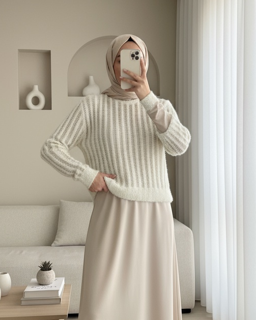 Patikka Örgü Yumuşak Puf Kazak -Ekru-Ekru