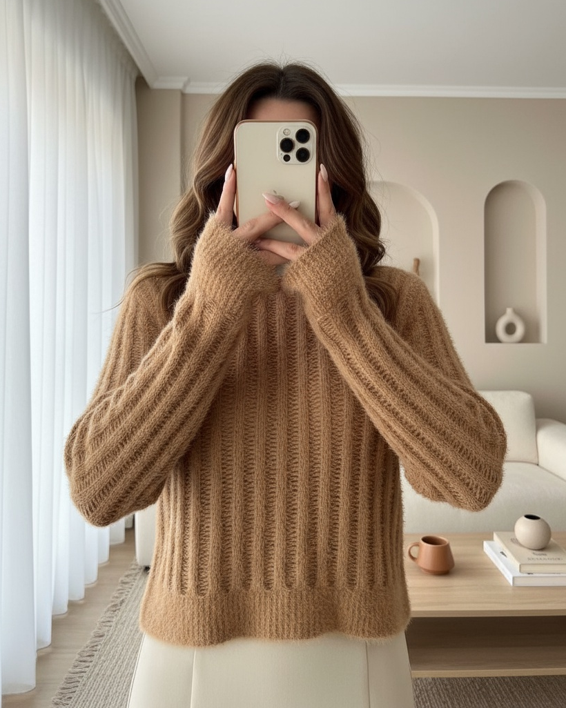 Patikka Örgü Yumuşak Puf Kazak -Tarçın-Tarçın