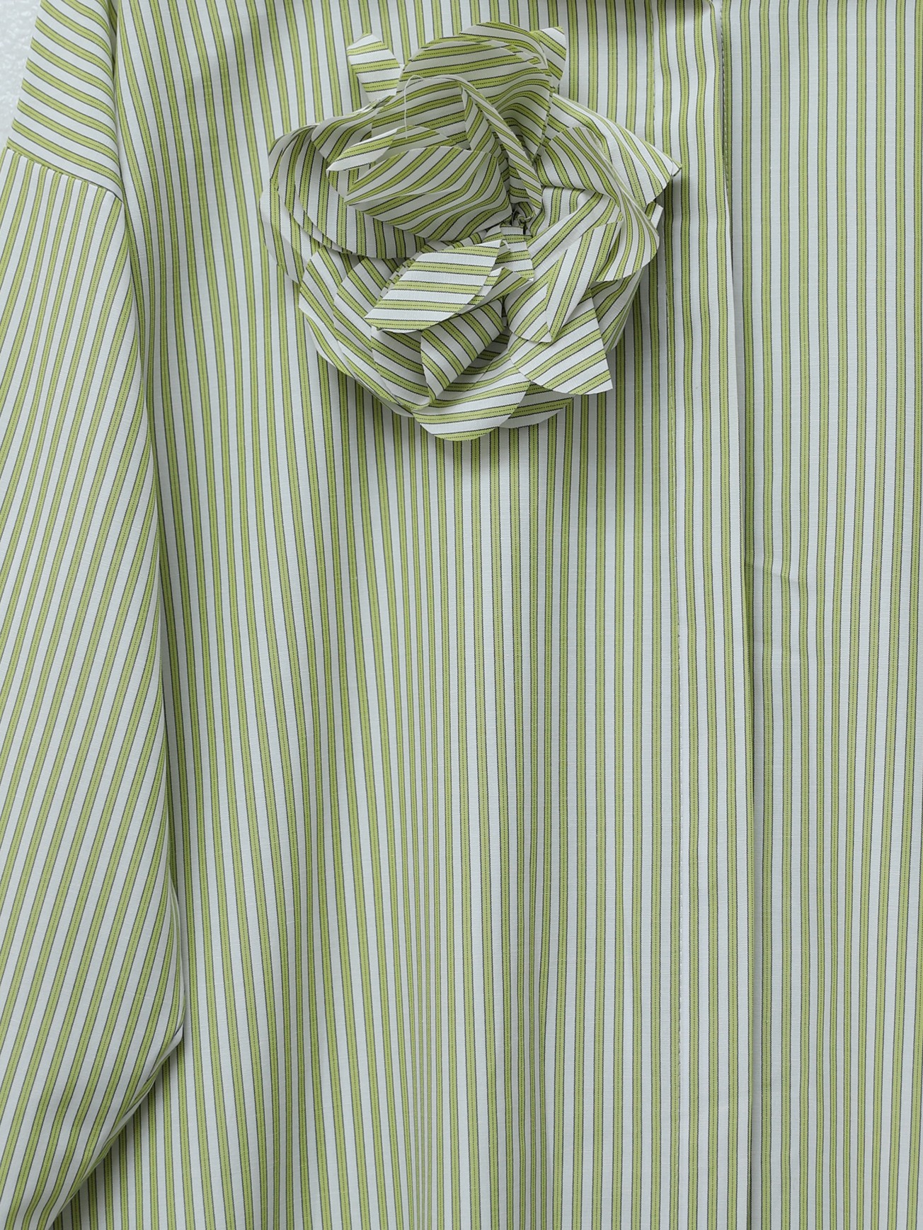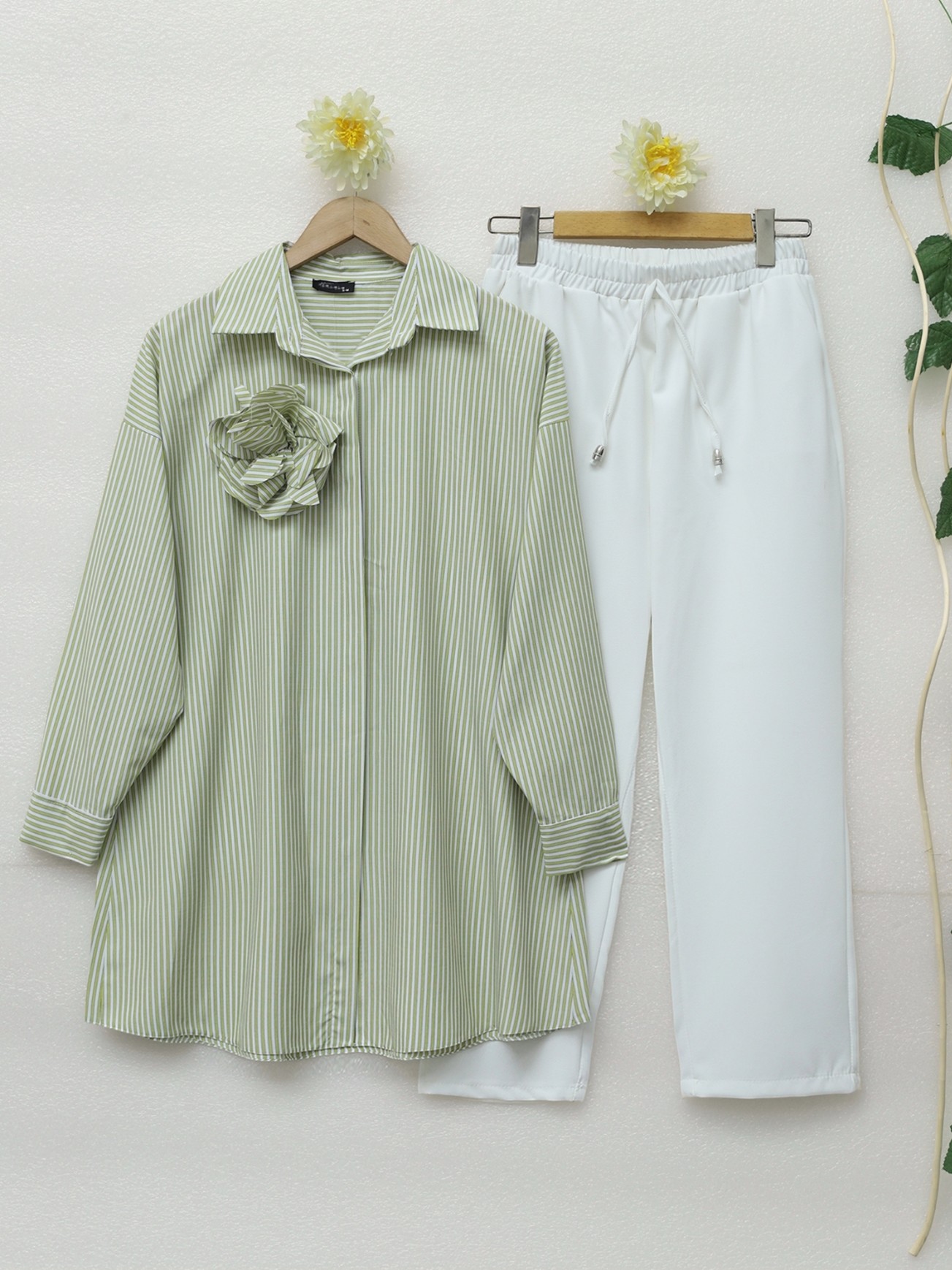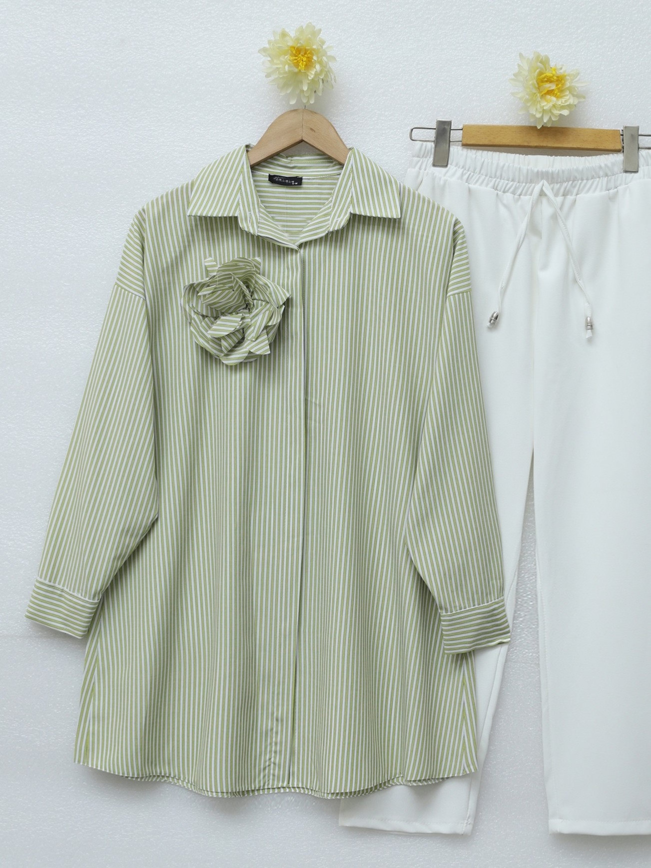 Pelerinli Çizgili Gömlek -Yağ Yeşili-Yağ Yeşili
