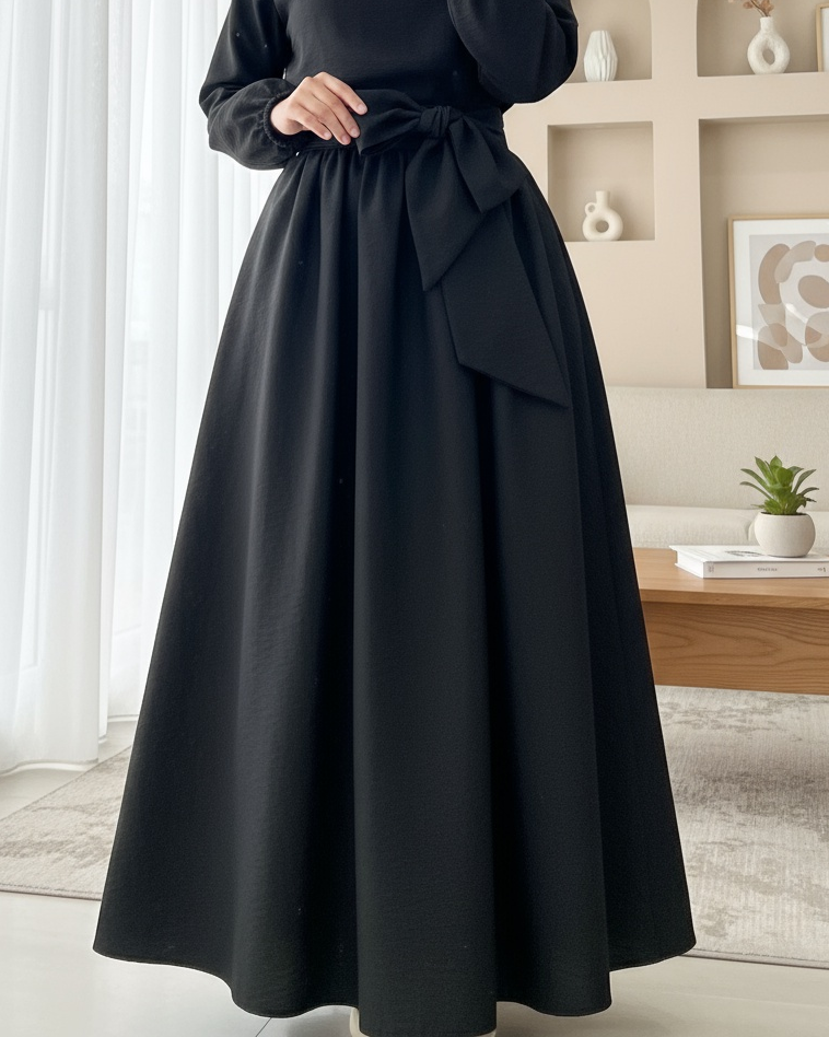 Piliseli Kemerli Paraşüt Etek -Siyah-Siyah