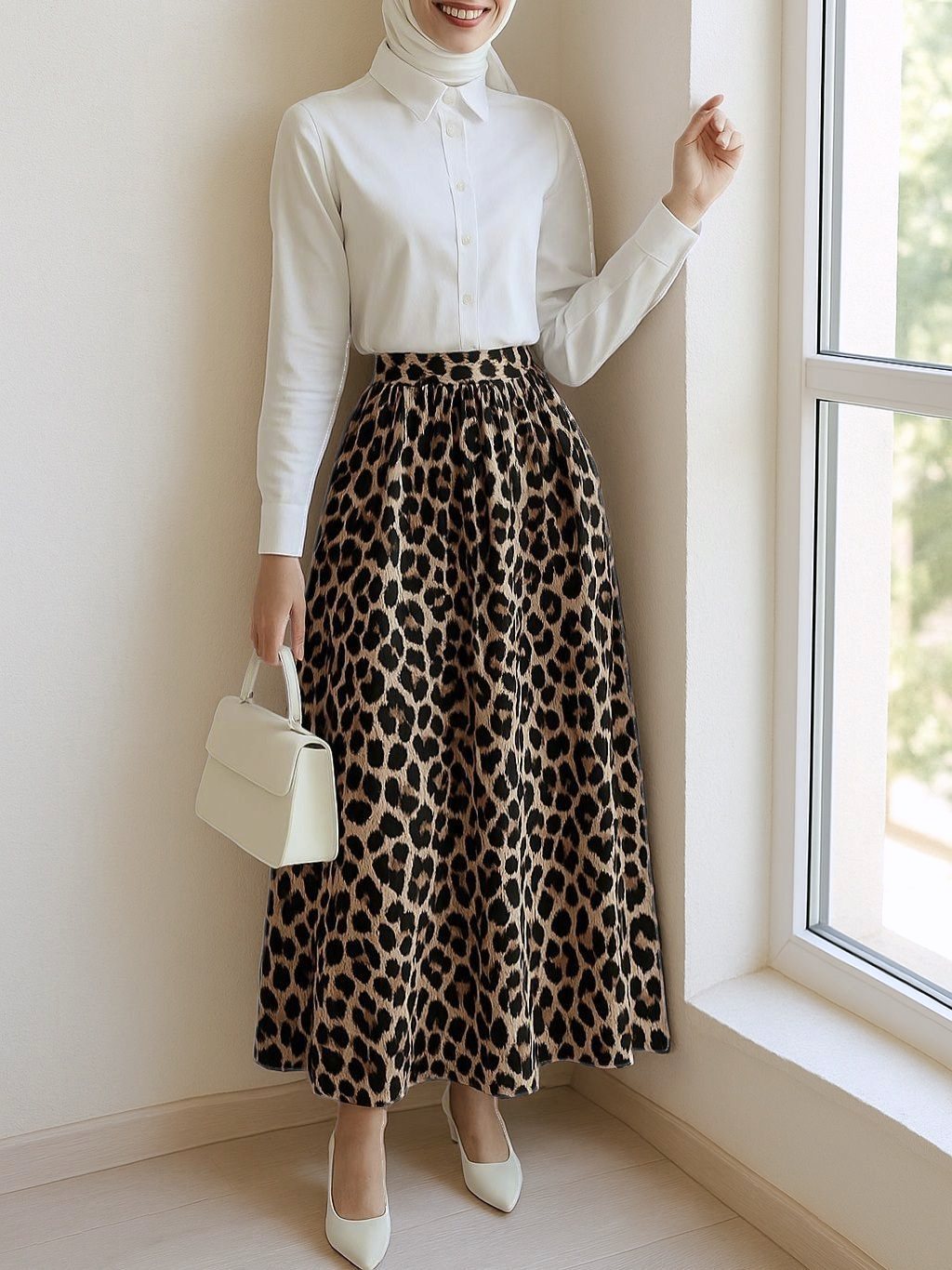 Pliseli Soft Balon Leopar Etek -Vizon-Vizon