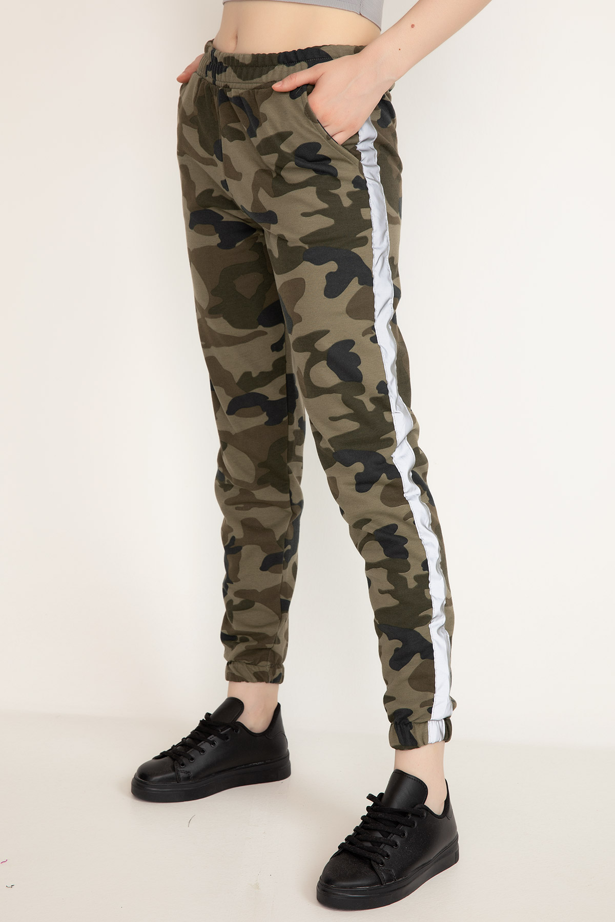 Reflektörlü Kamuflaj Eşofman Altı-Haki