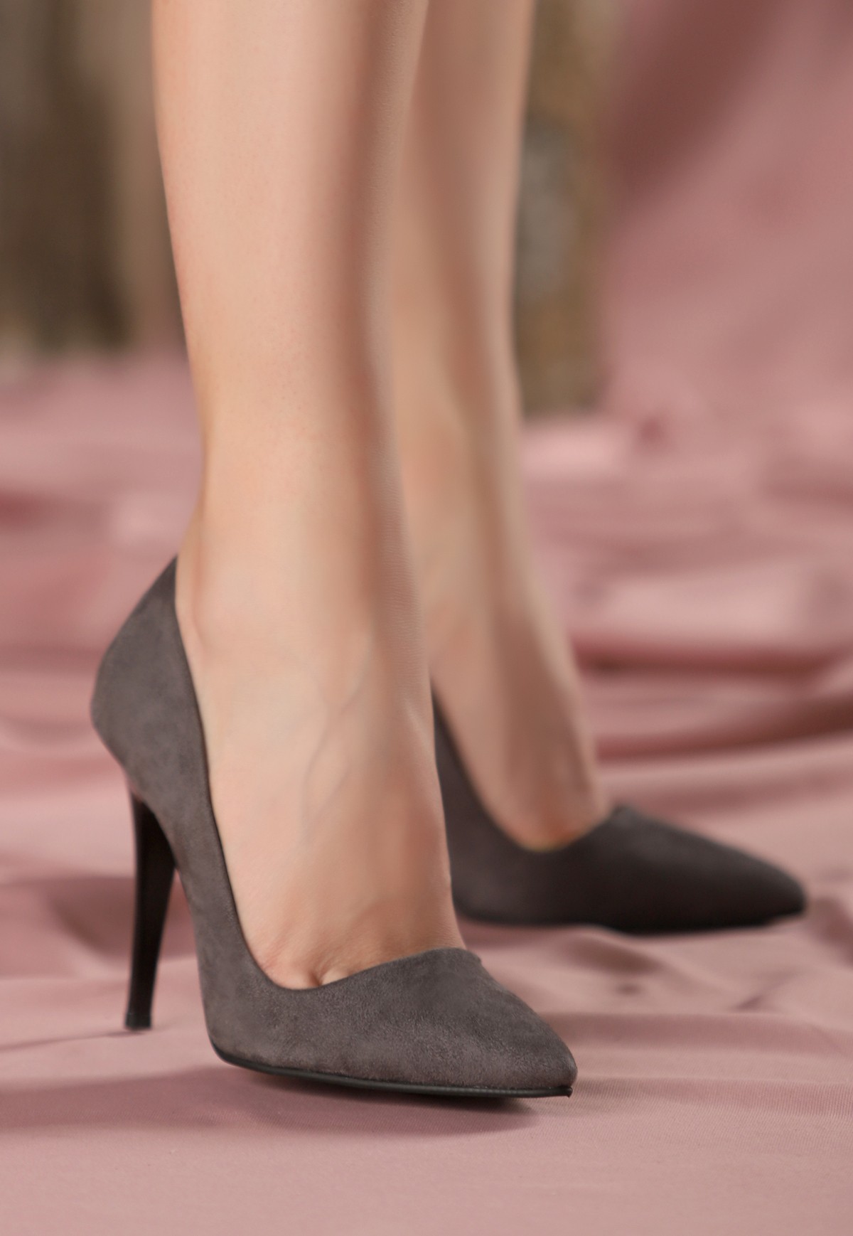 Reme Gri Süet Stiletto Ayakkabı-Gri