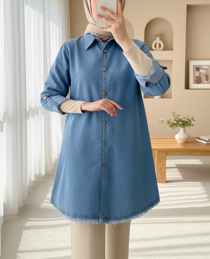 Renkli Kot Tunik -Mavi-Mavi