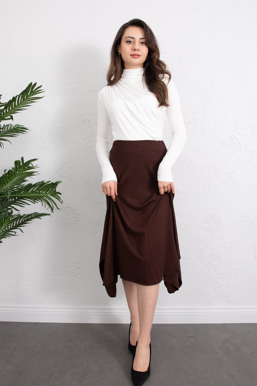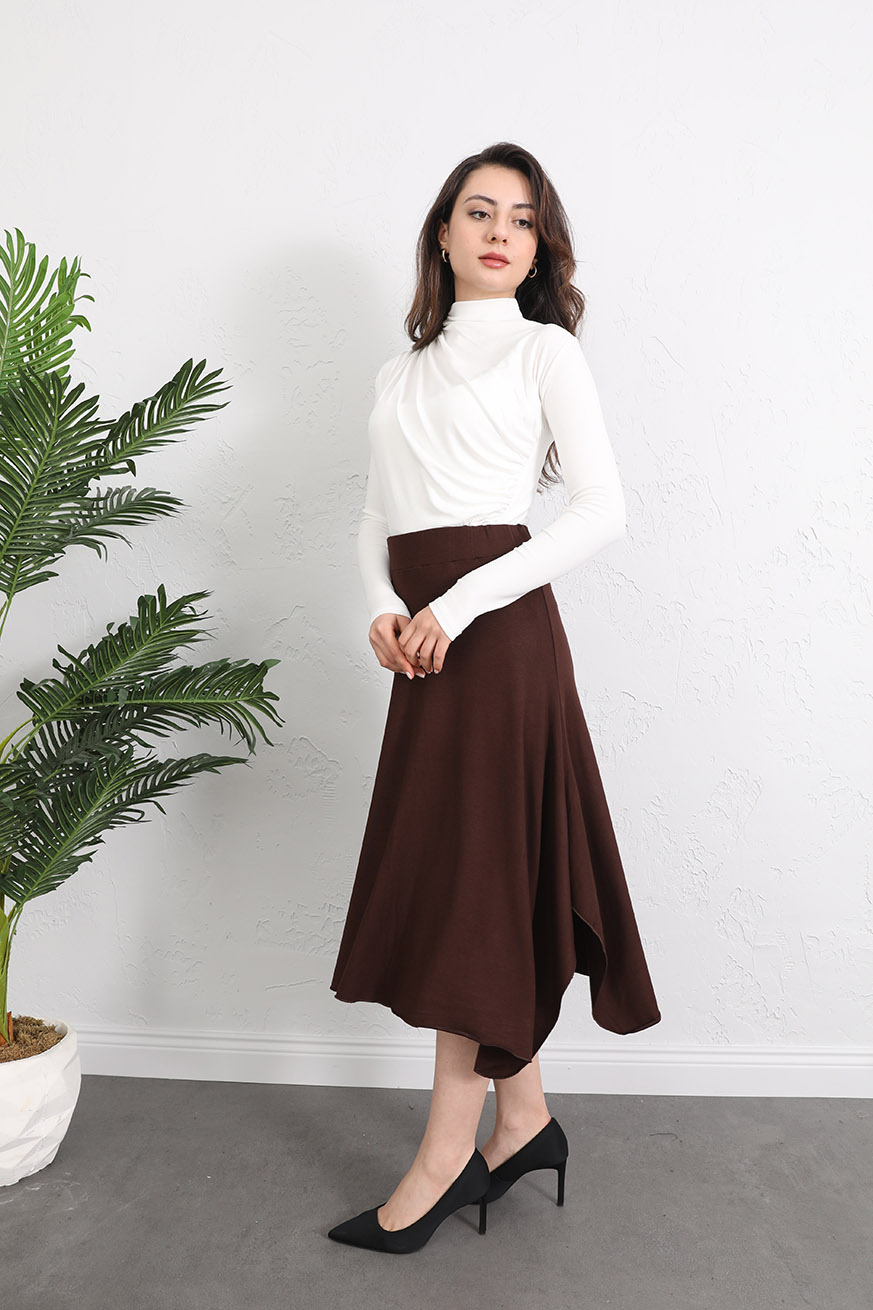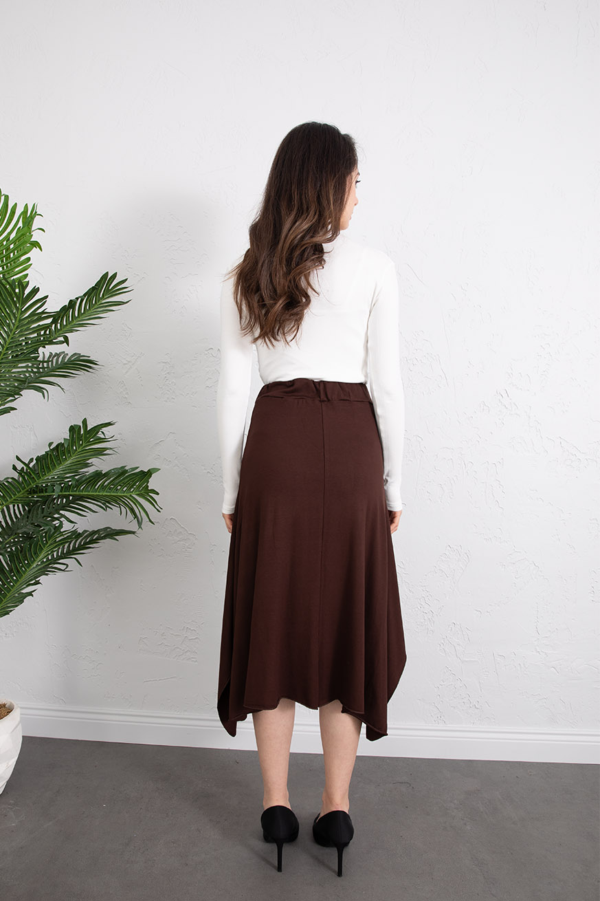 Ribana Kulaklı Asimetrik Etek Kahve - 5158-Kahve