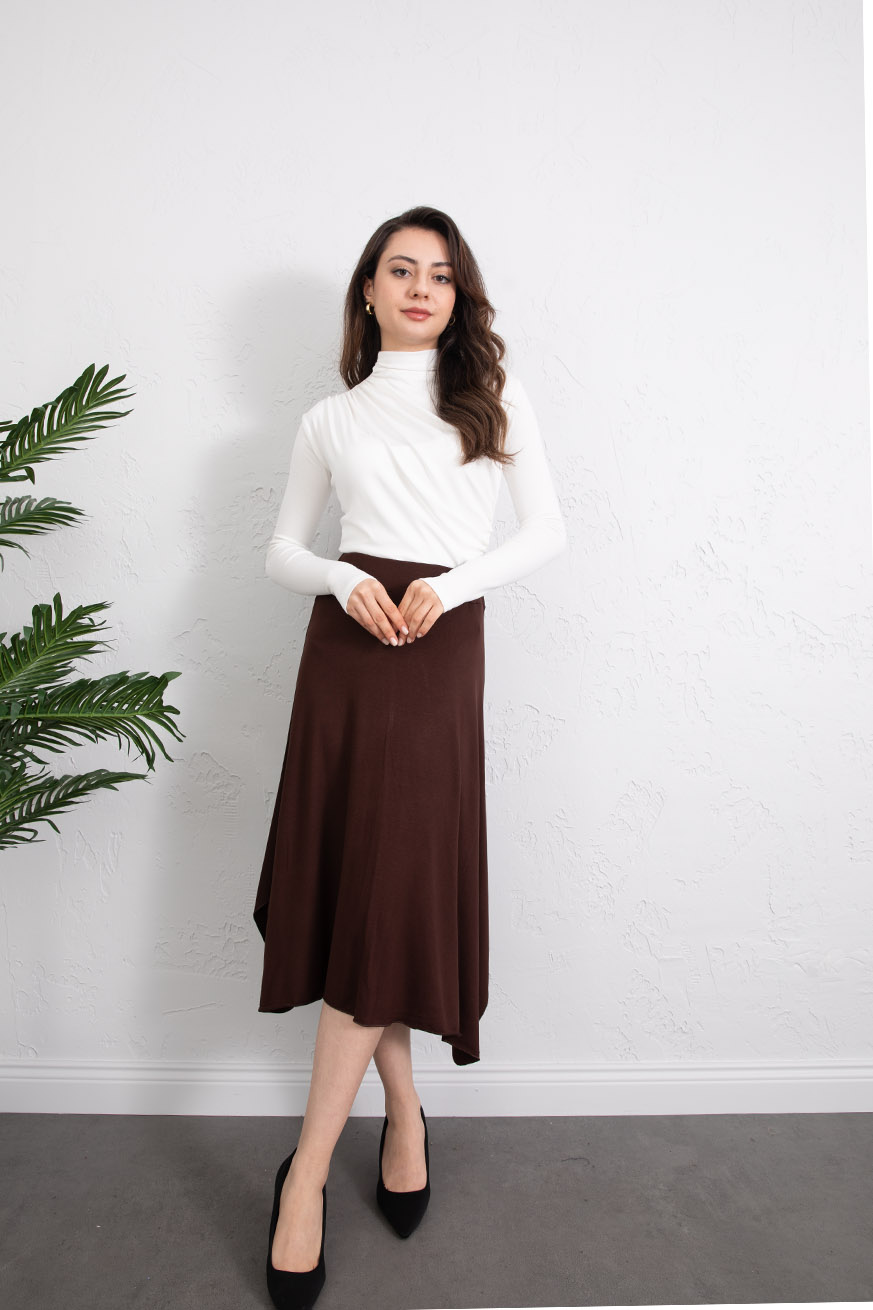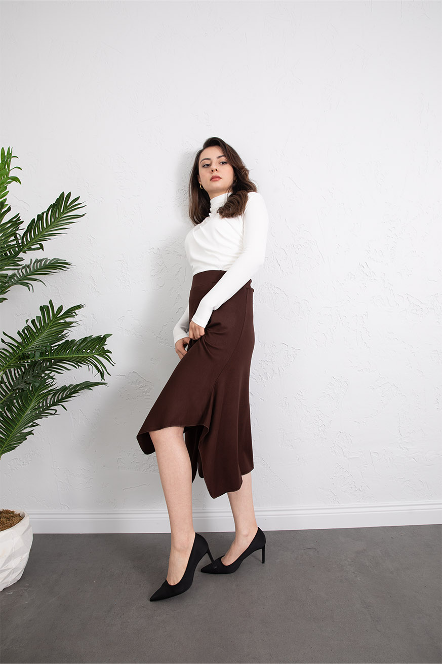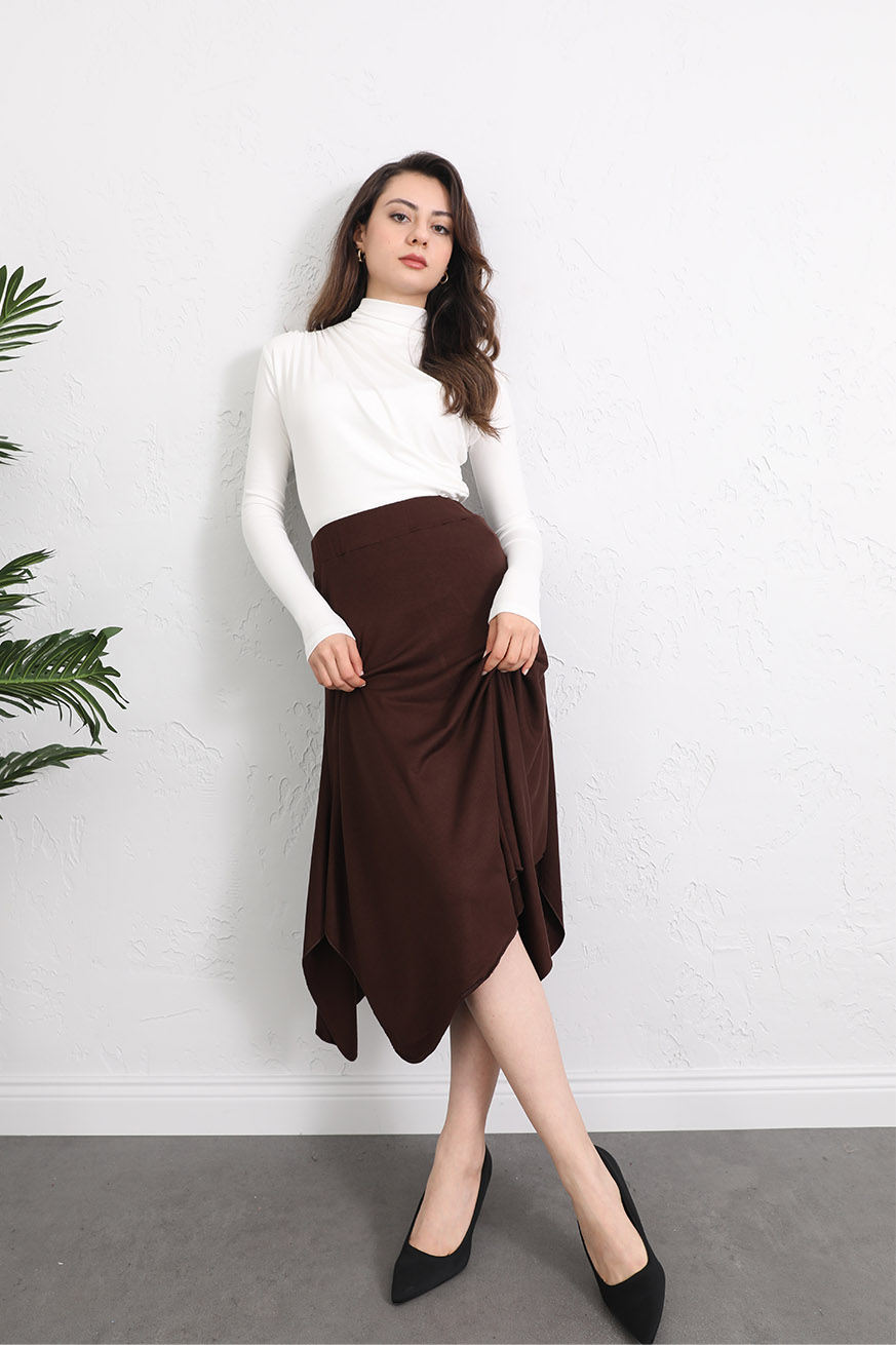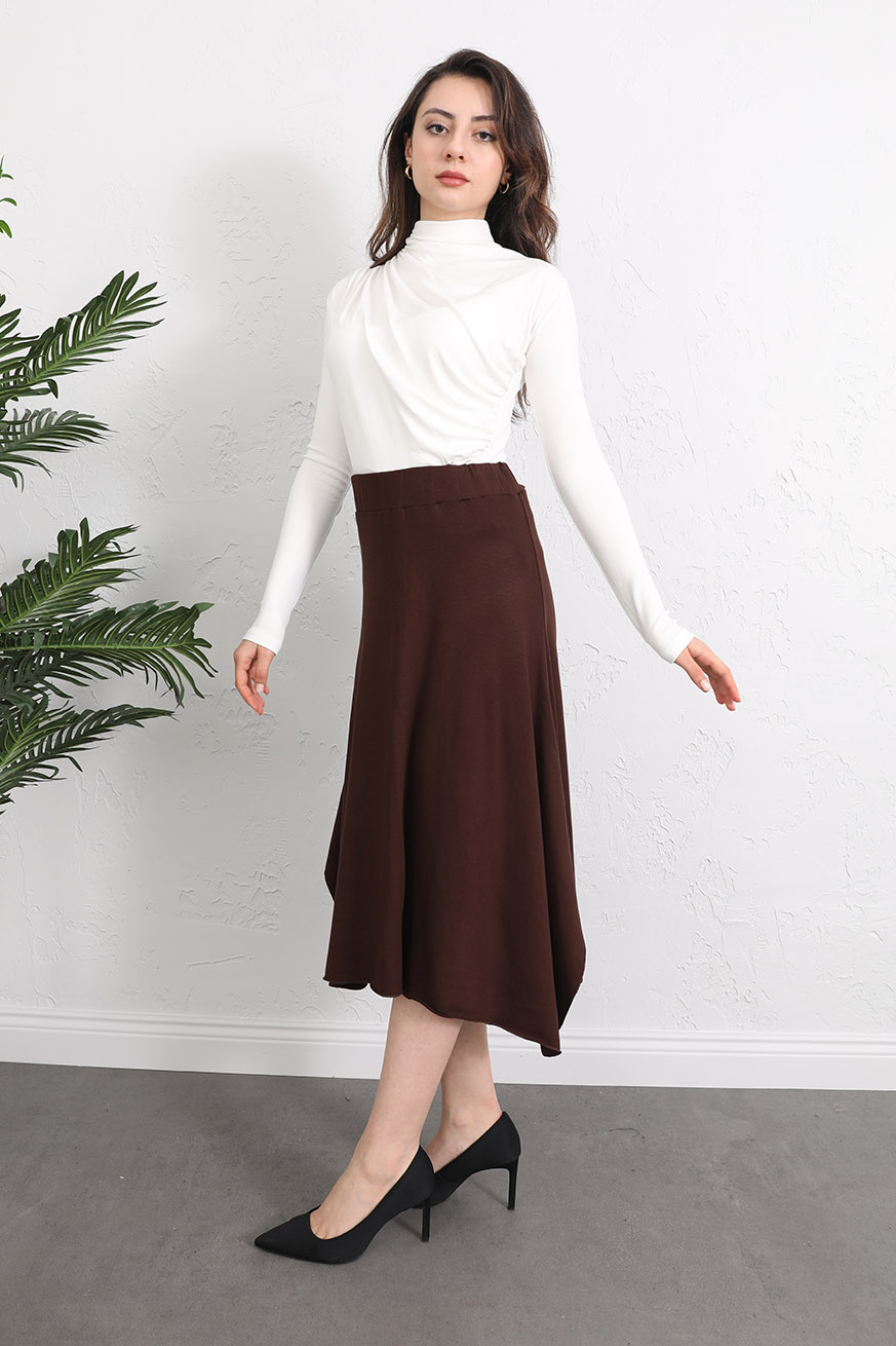 Ribana Kulaklı Asimetrik Etek Kahve - 5158-Kahve