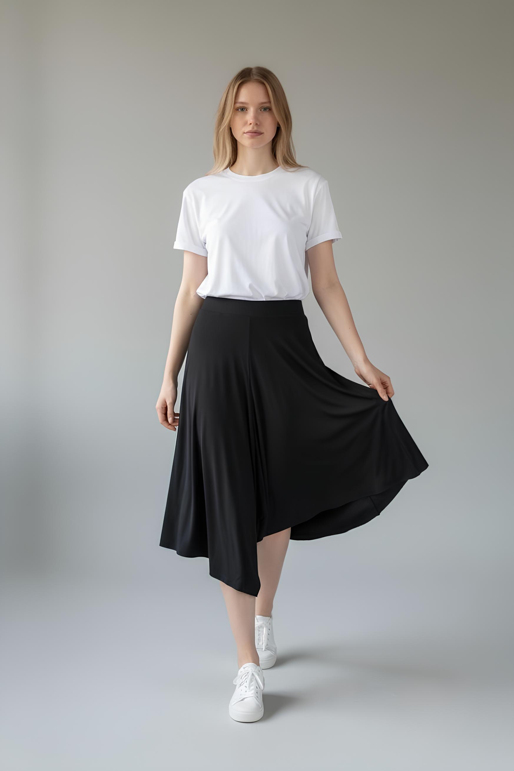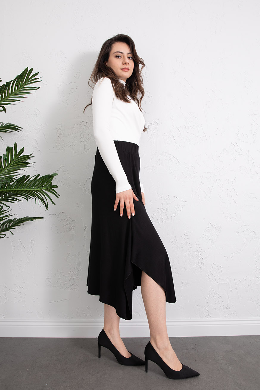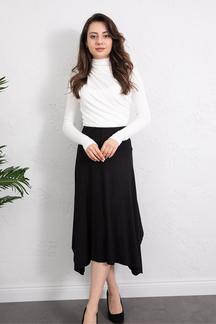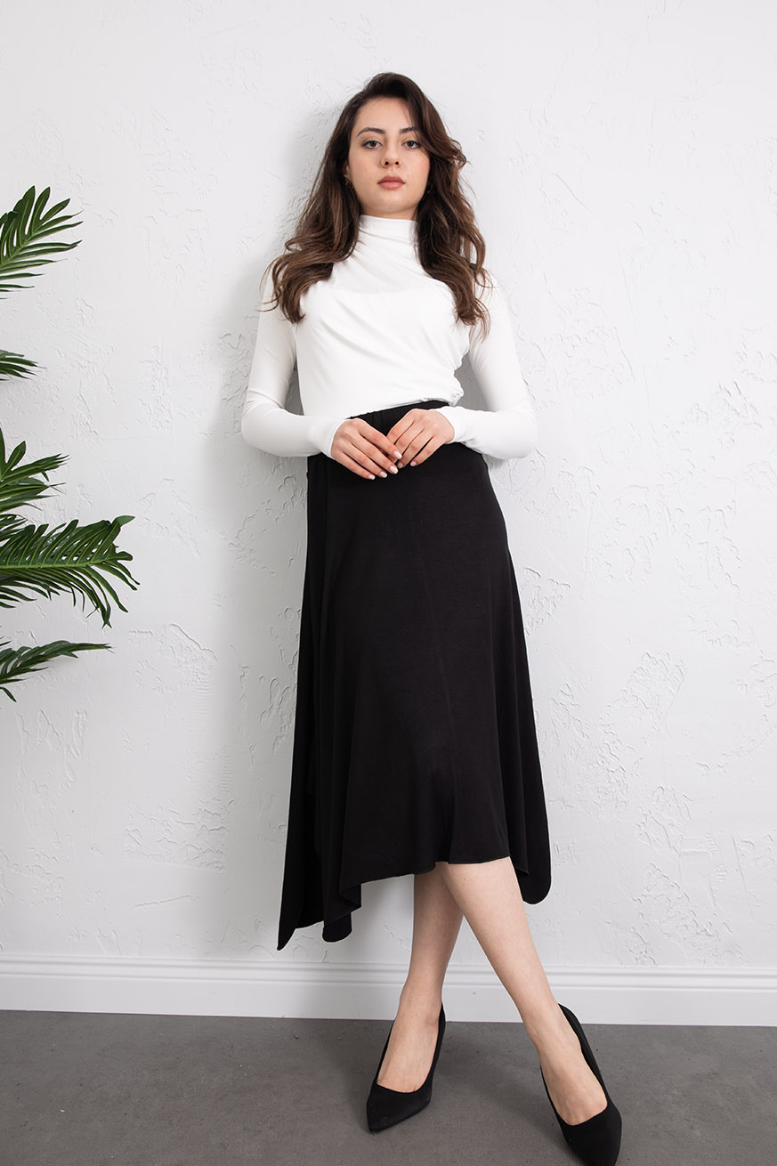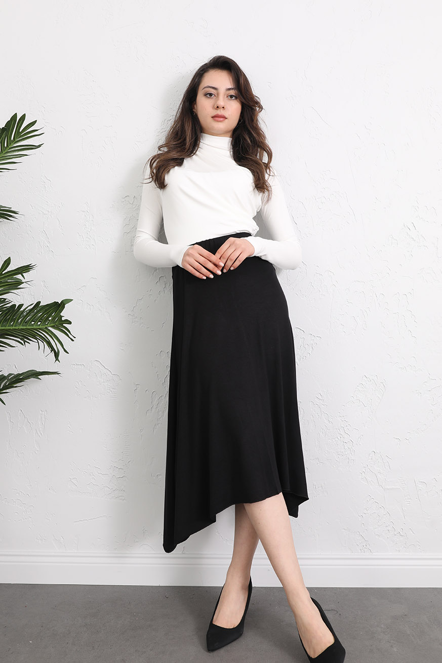 Ribana Kulaklı Asimetrik Etek Siyah - 5158-Siyah