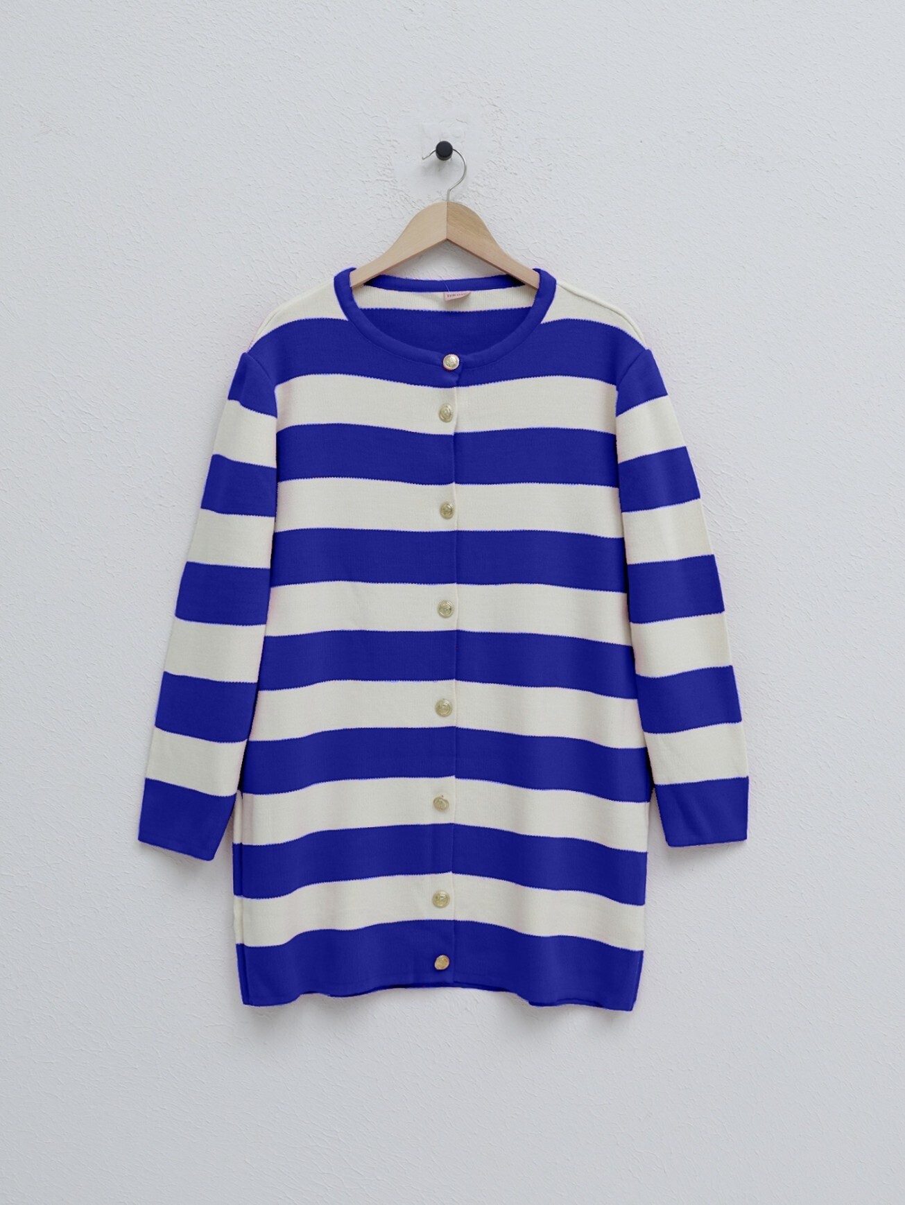 Ringelli Metal Dügme Çelik Örgü Salaş Hırka -Saks-Saks