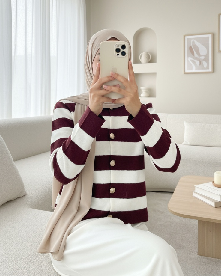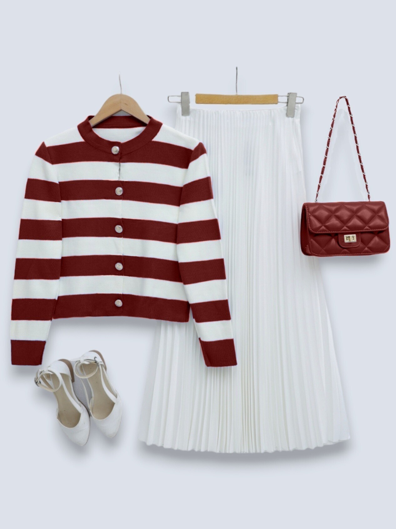 Ringelli Metal Düğmeli Kısa Hırka -Bordo-Bordo