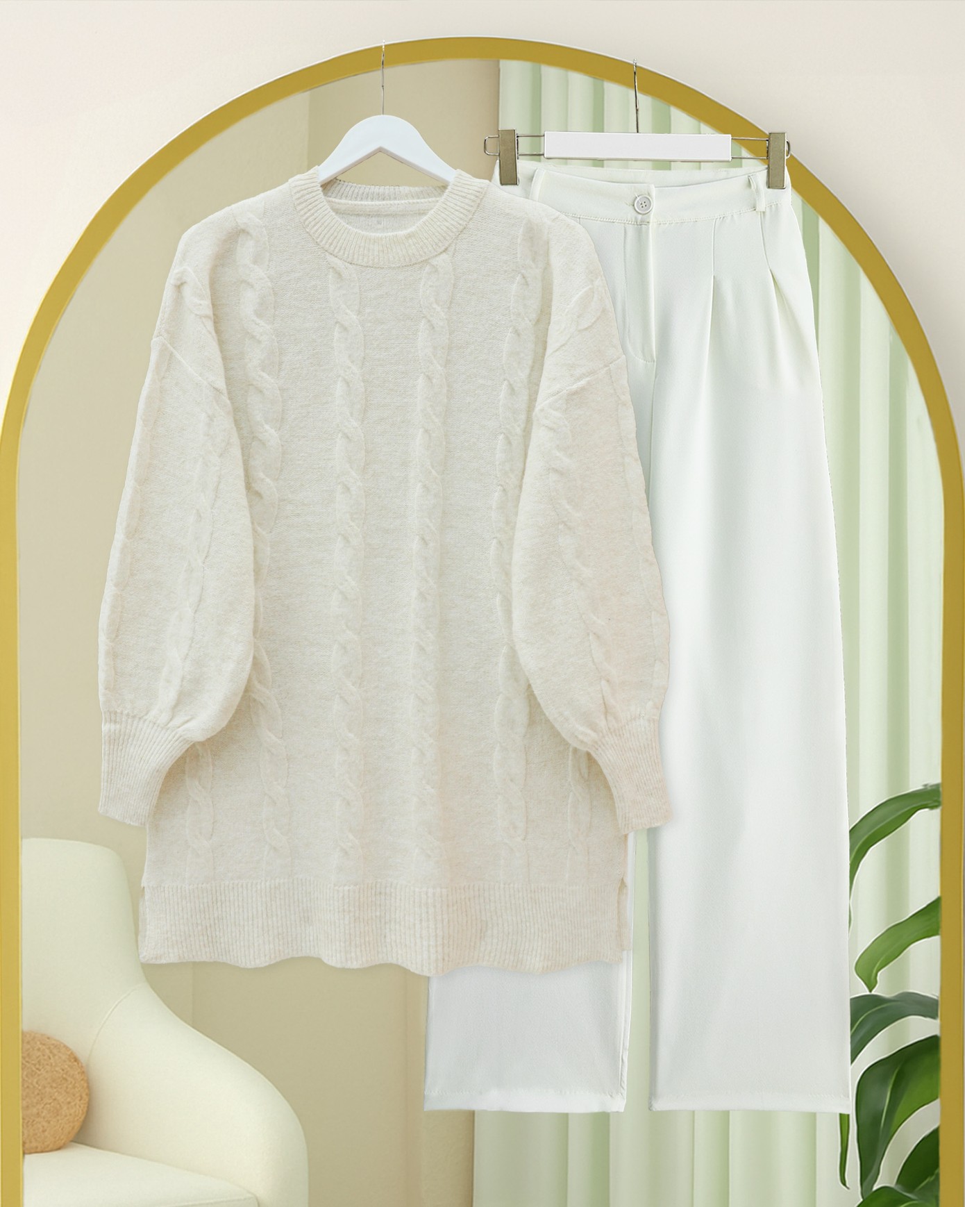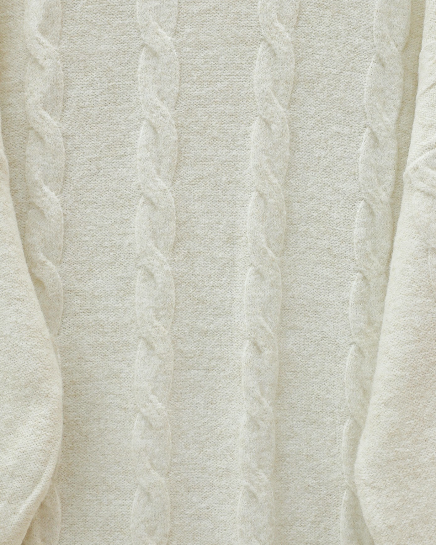 Saç Örgü Desen Yumoş Triko Kazak -Ekru-Ekru