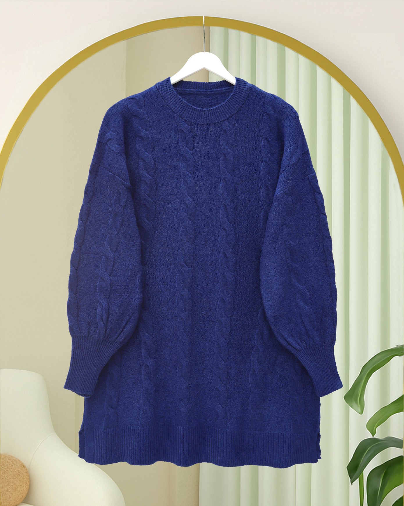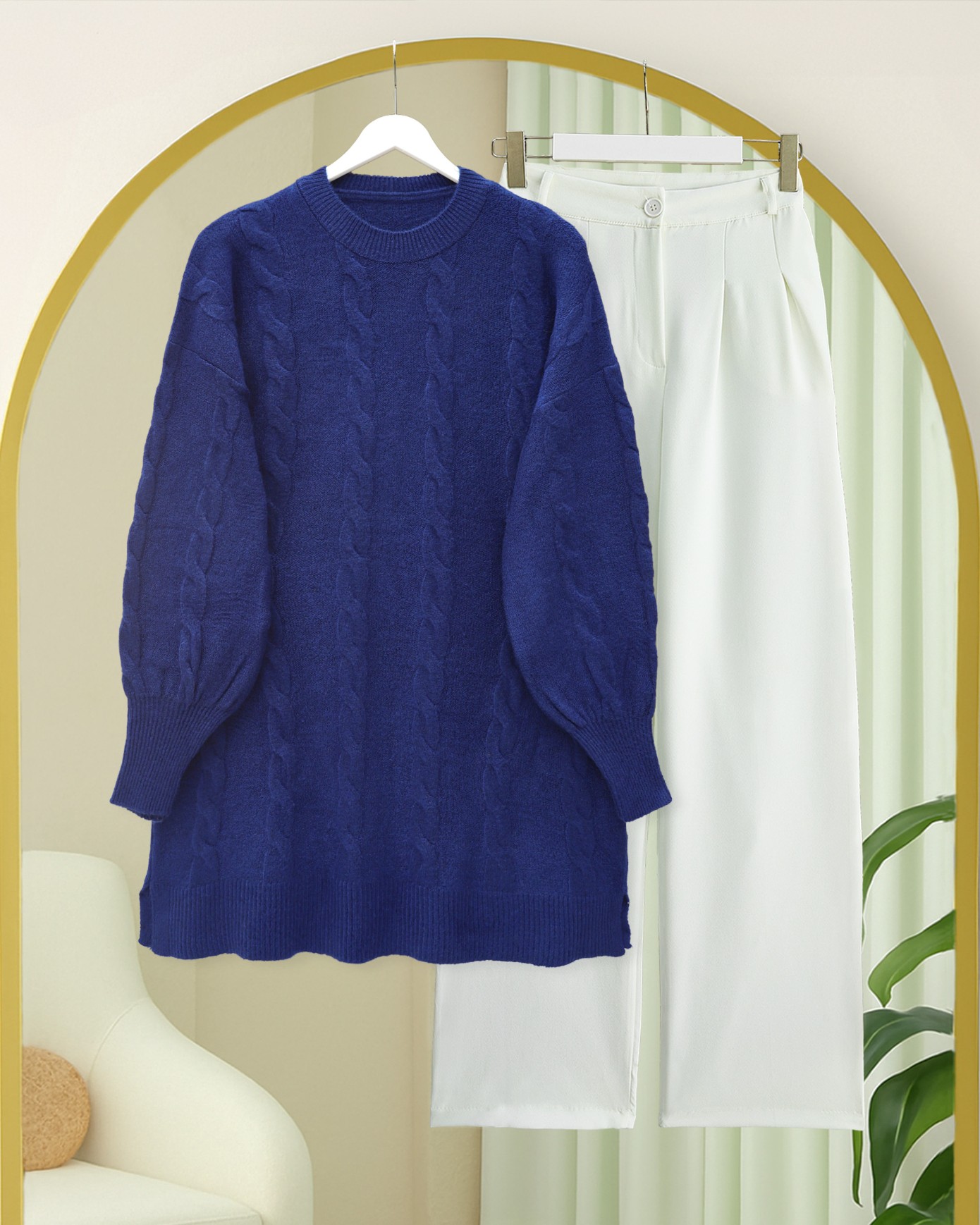 Saç Örgü Desen Yumoş Triko Kazak -Laci-Lacivert