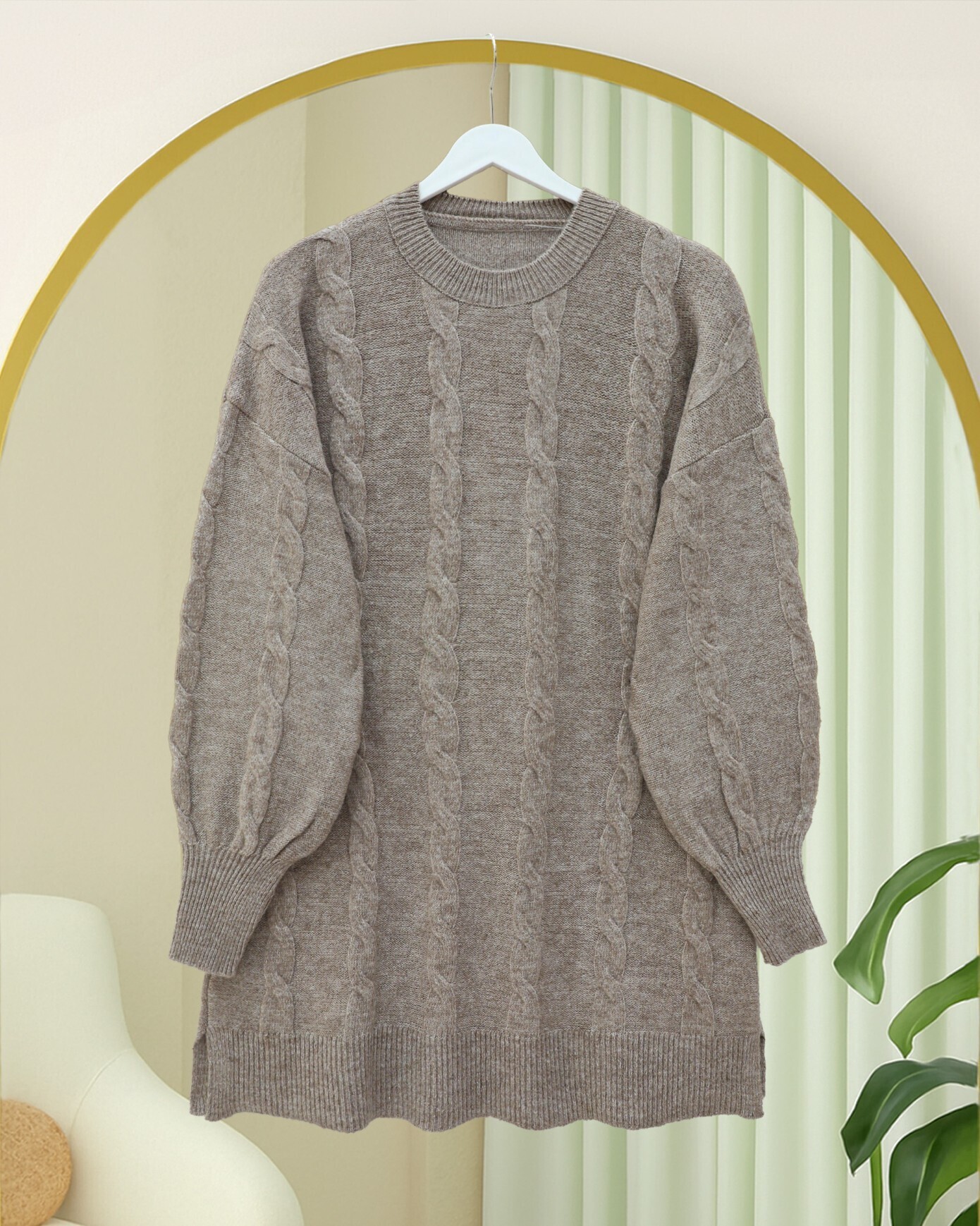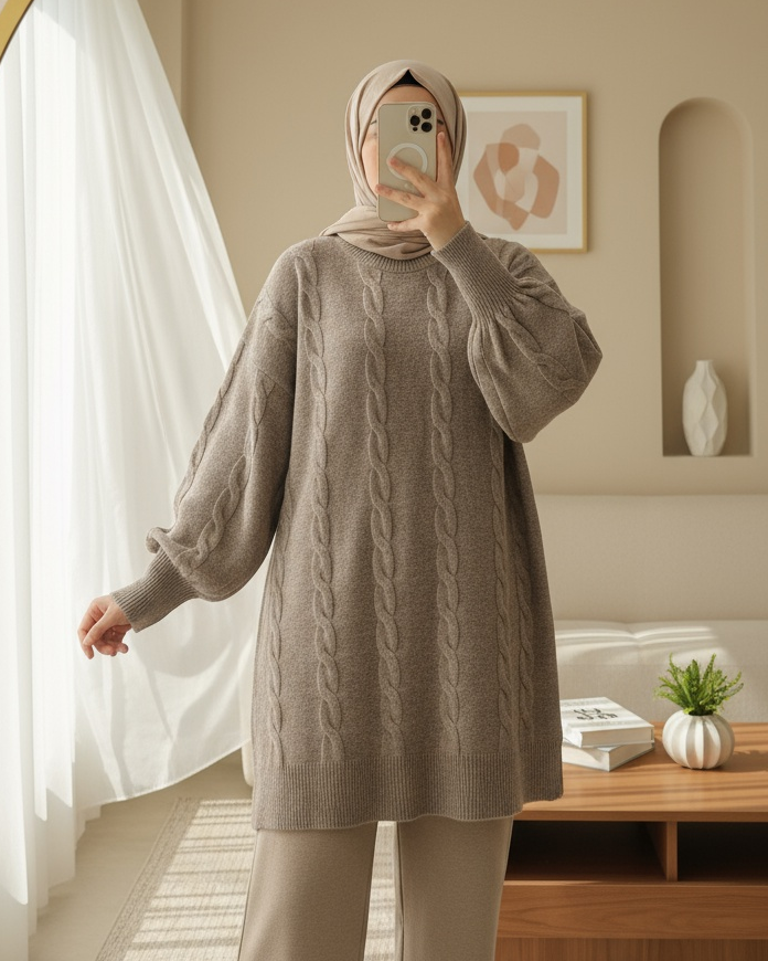 Saç Örgü Desen Yumoş Triko Kazak -Toprak-Toprak