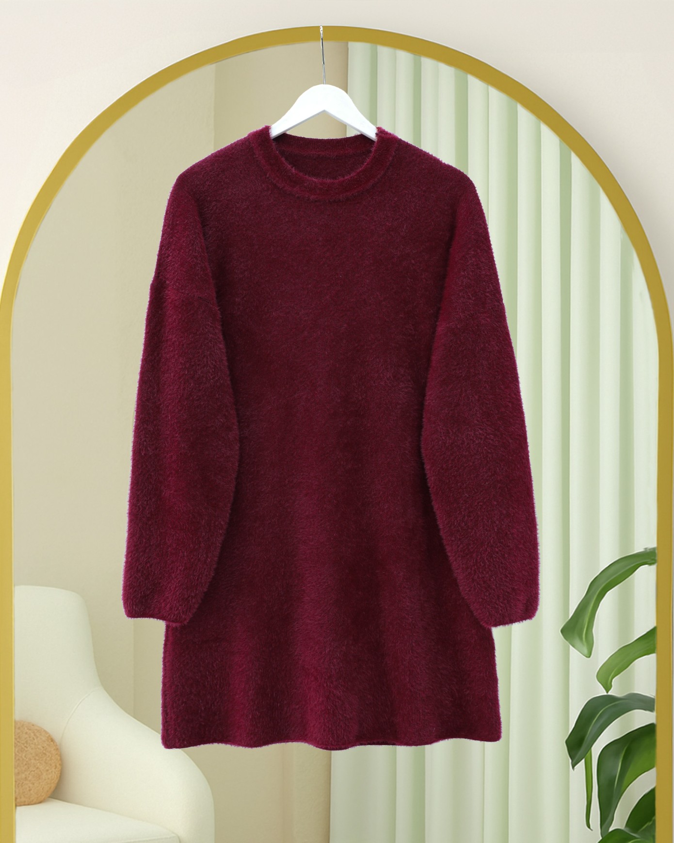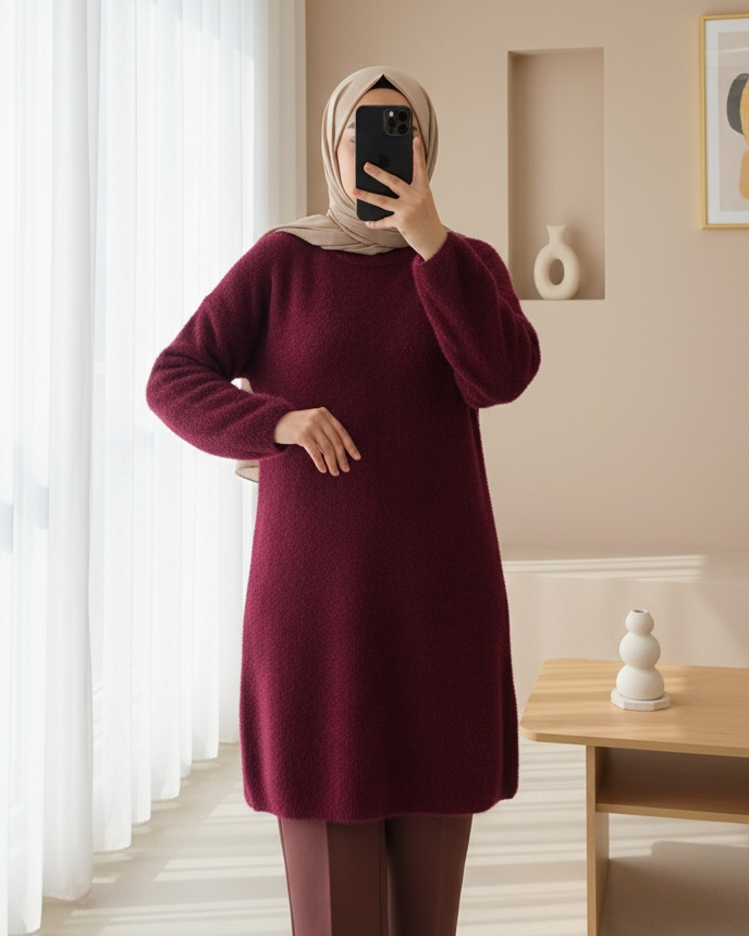 Sakallı Uzun Salaş Triko Tunik -Bordo-Bordo