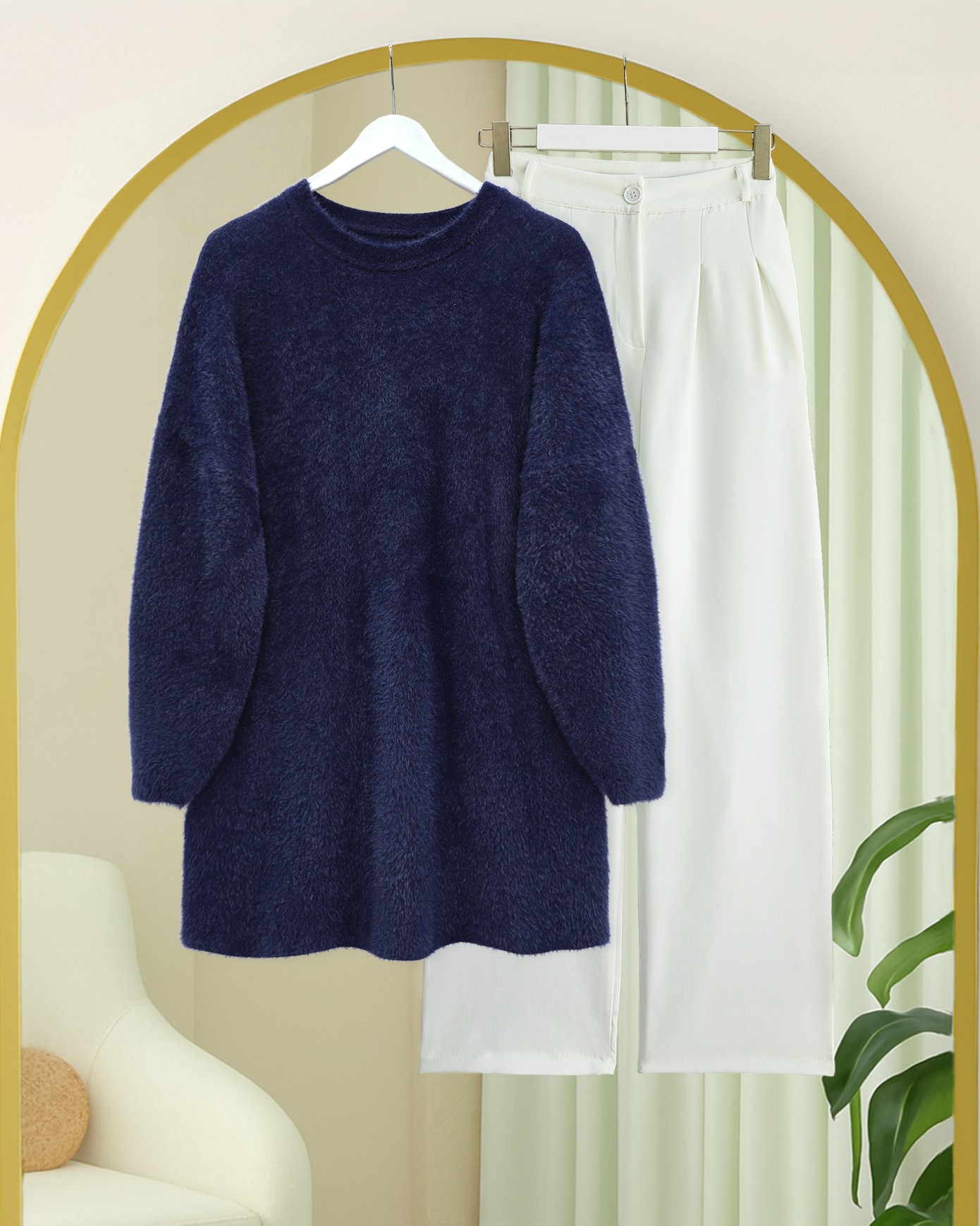 Sakallı Uzun Salaş Triko Tunik -Laci-Lacivert