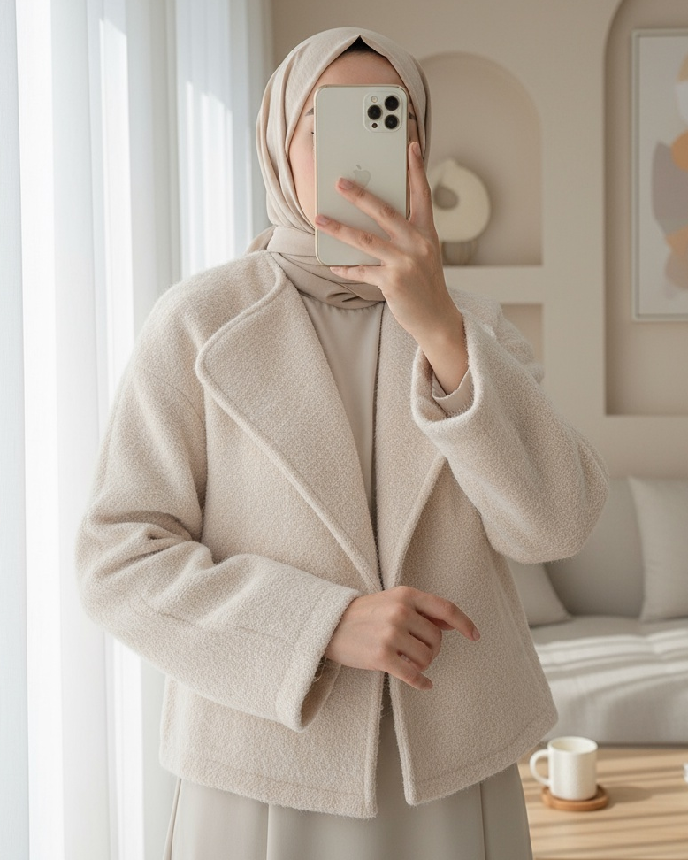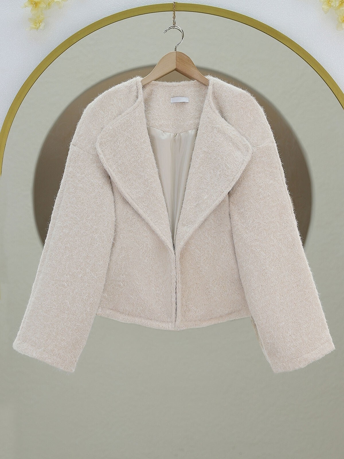 Şal Yaka Astarlı Cepli Buklet Ceket -Ekru-Ekru