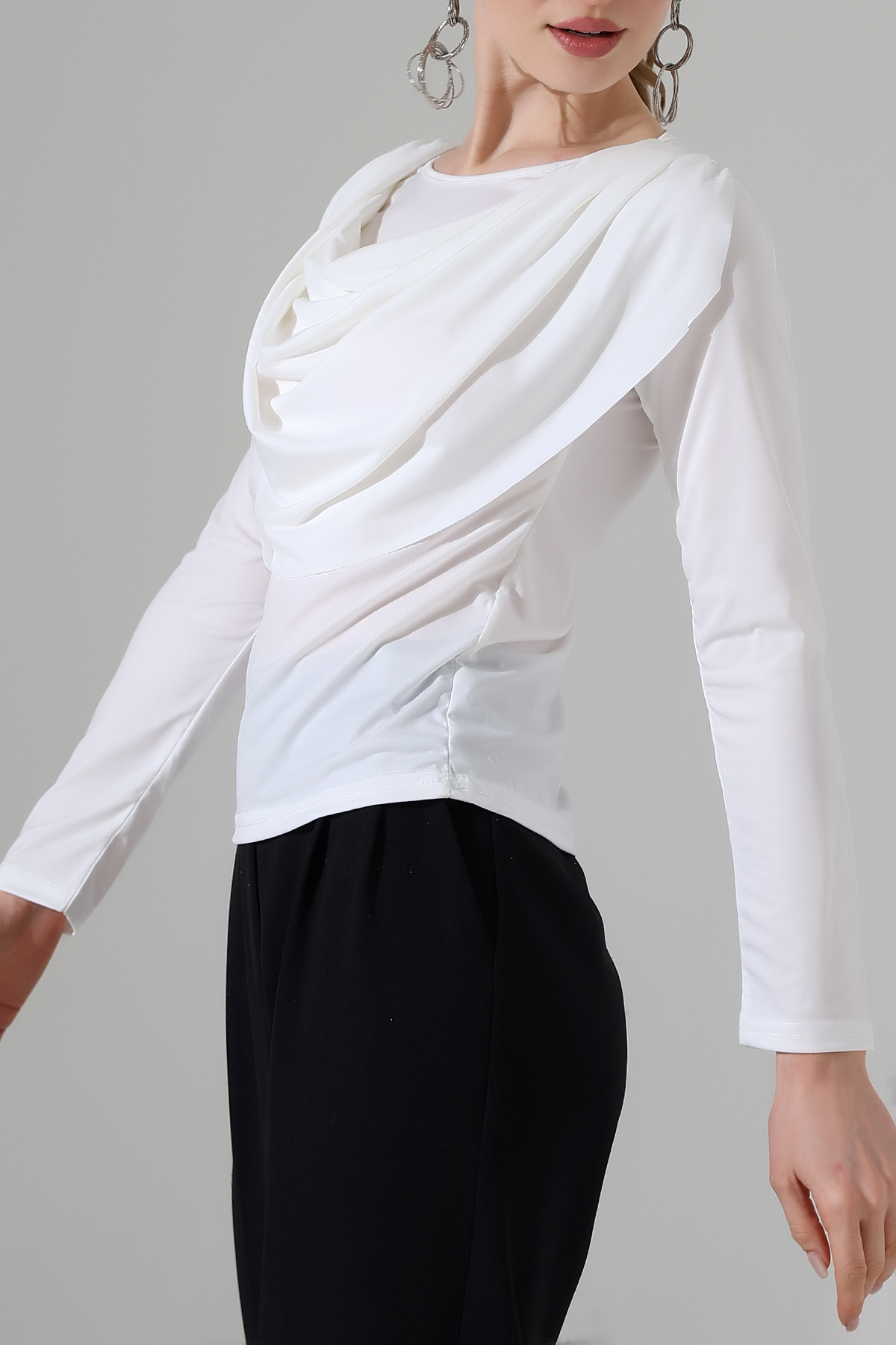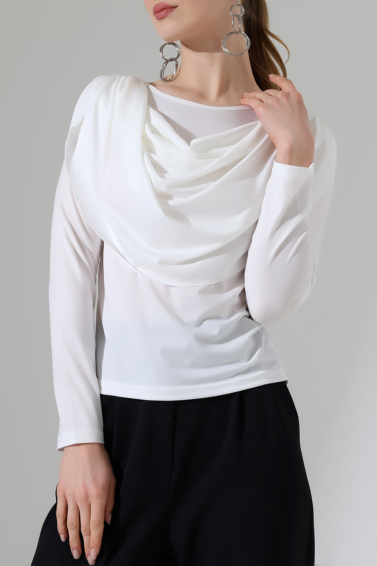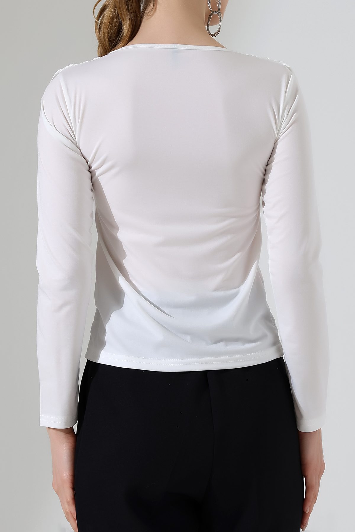 Sandy Degaje Şal Yaka Bluz Beyaz - 934-Beyaz