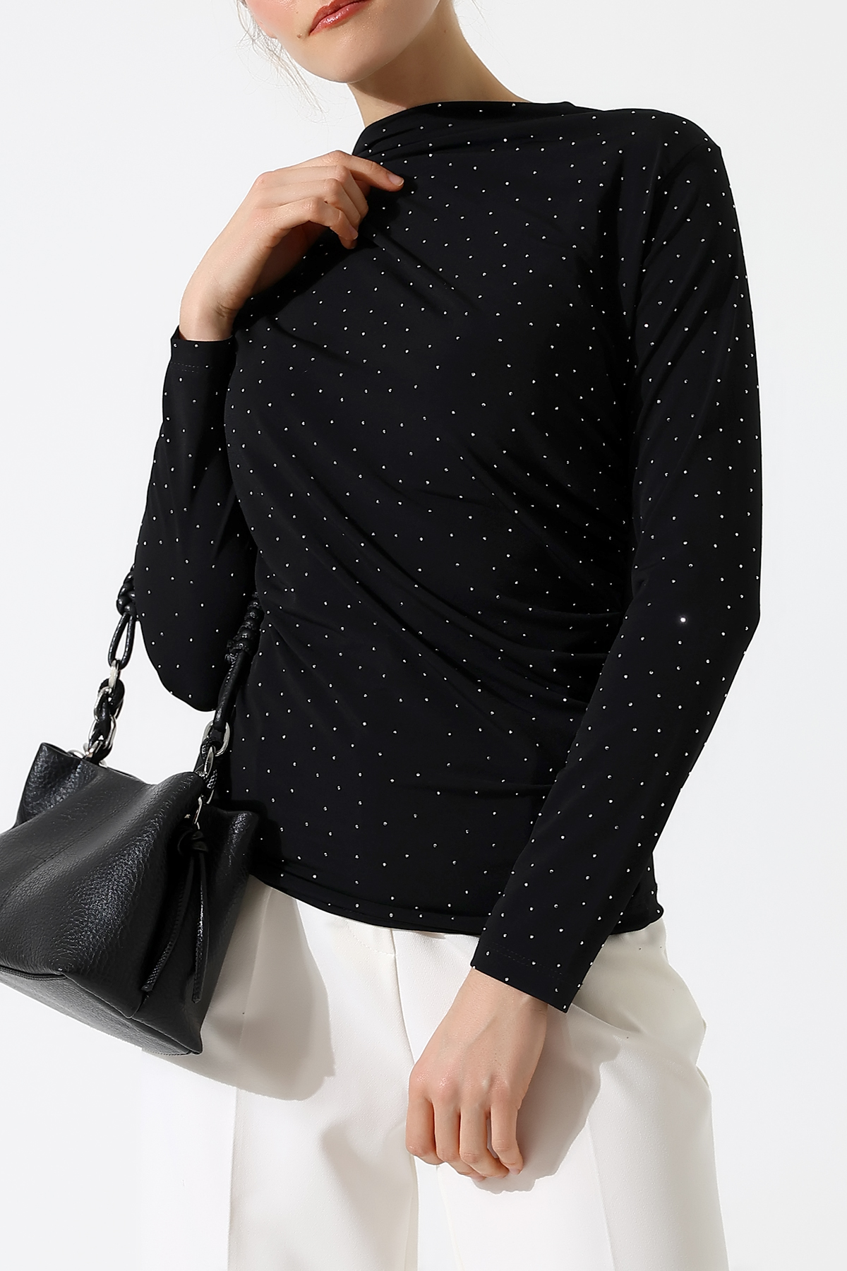 Sandy Taşlı Bluz Siyah - 2550-Siyah