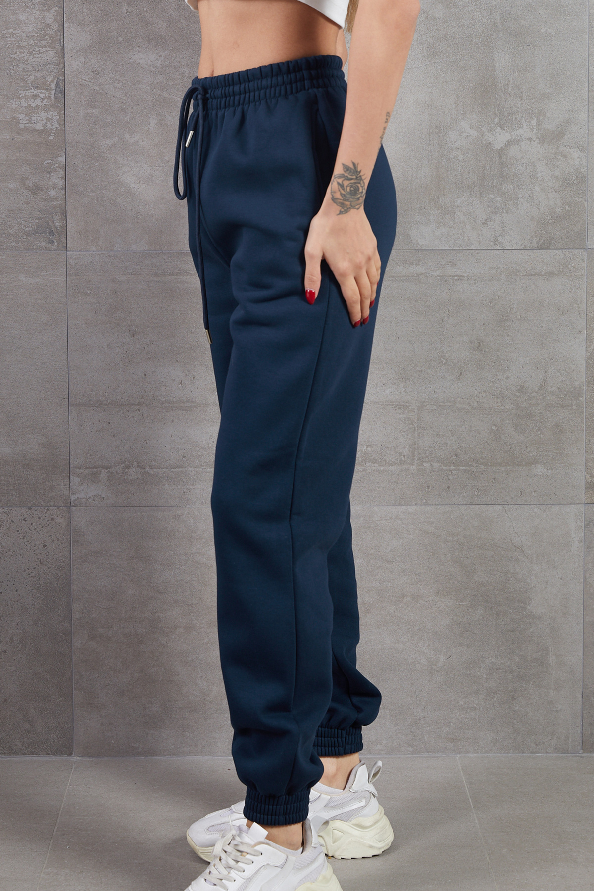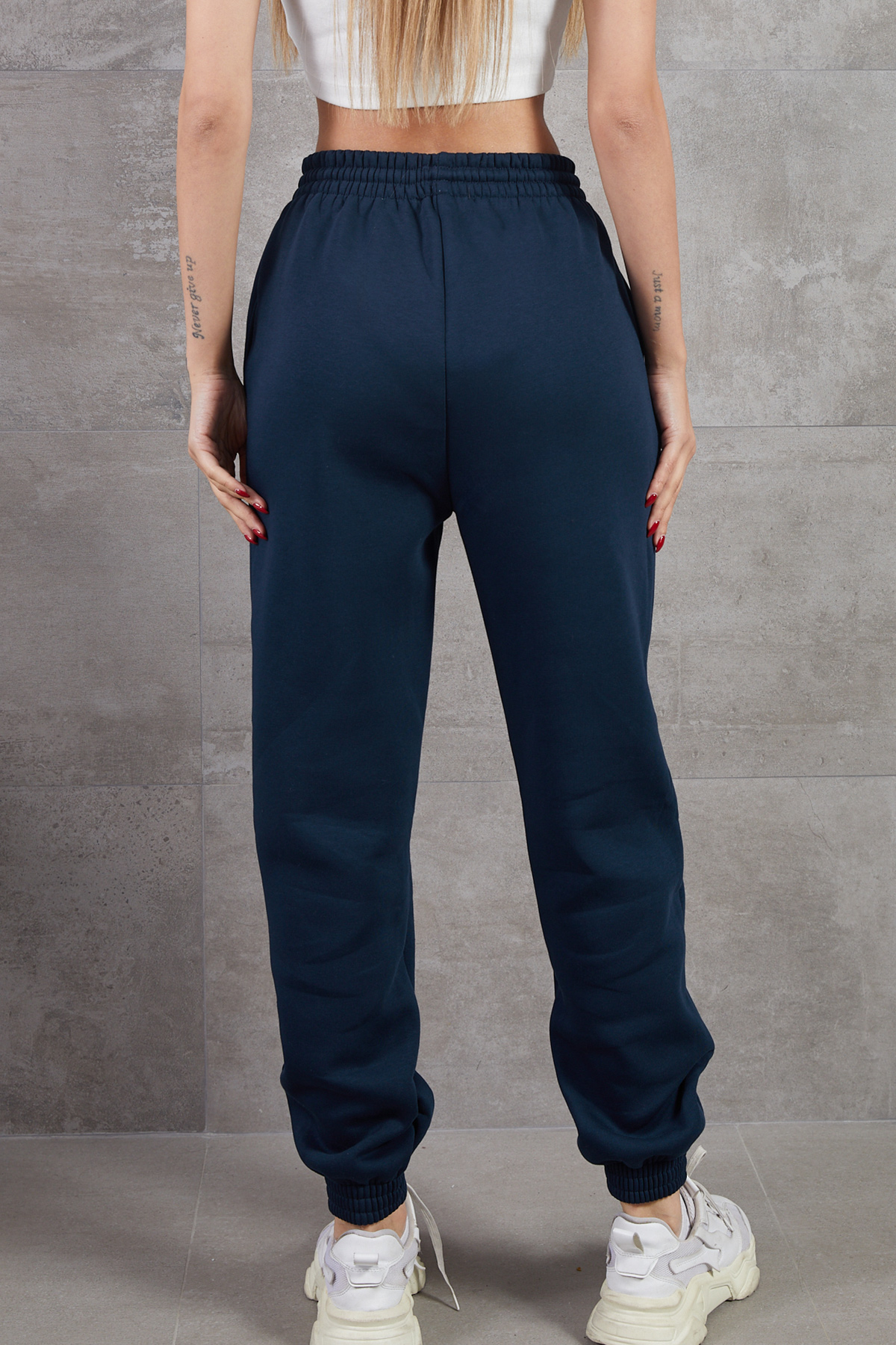 Şardonlu Yüksek Bel Cepli Jogger Eşofman Altı-Lacivert