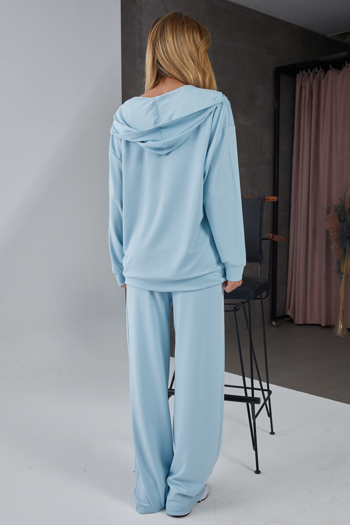 Şerit Detaylı Kapüşonlu Modal Eşofman Takımı-Mavi