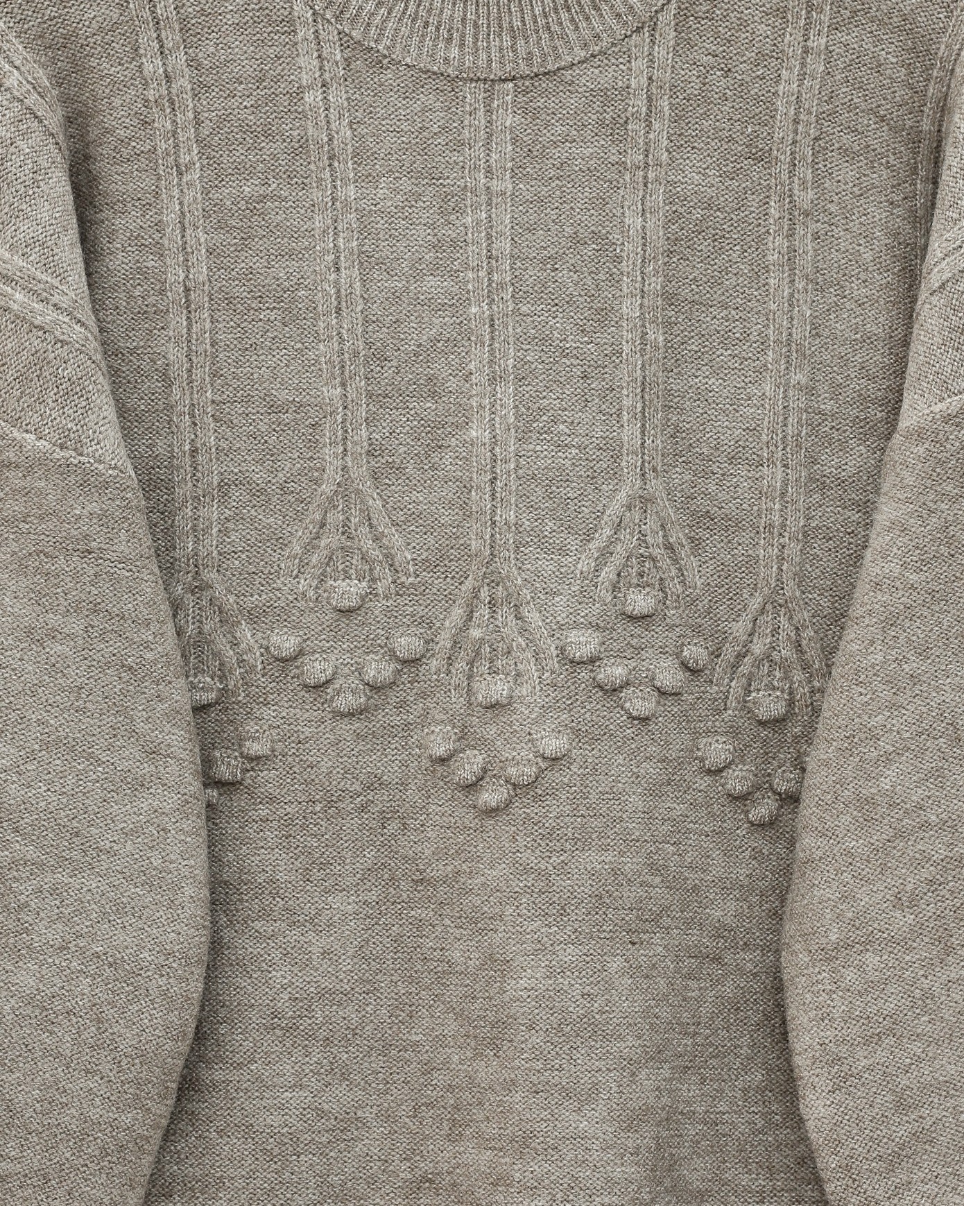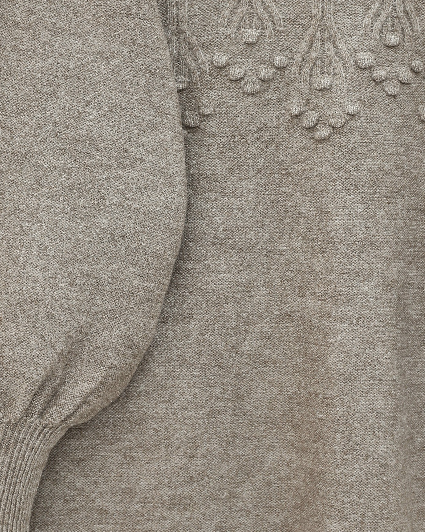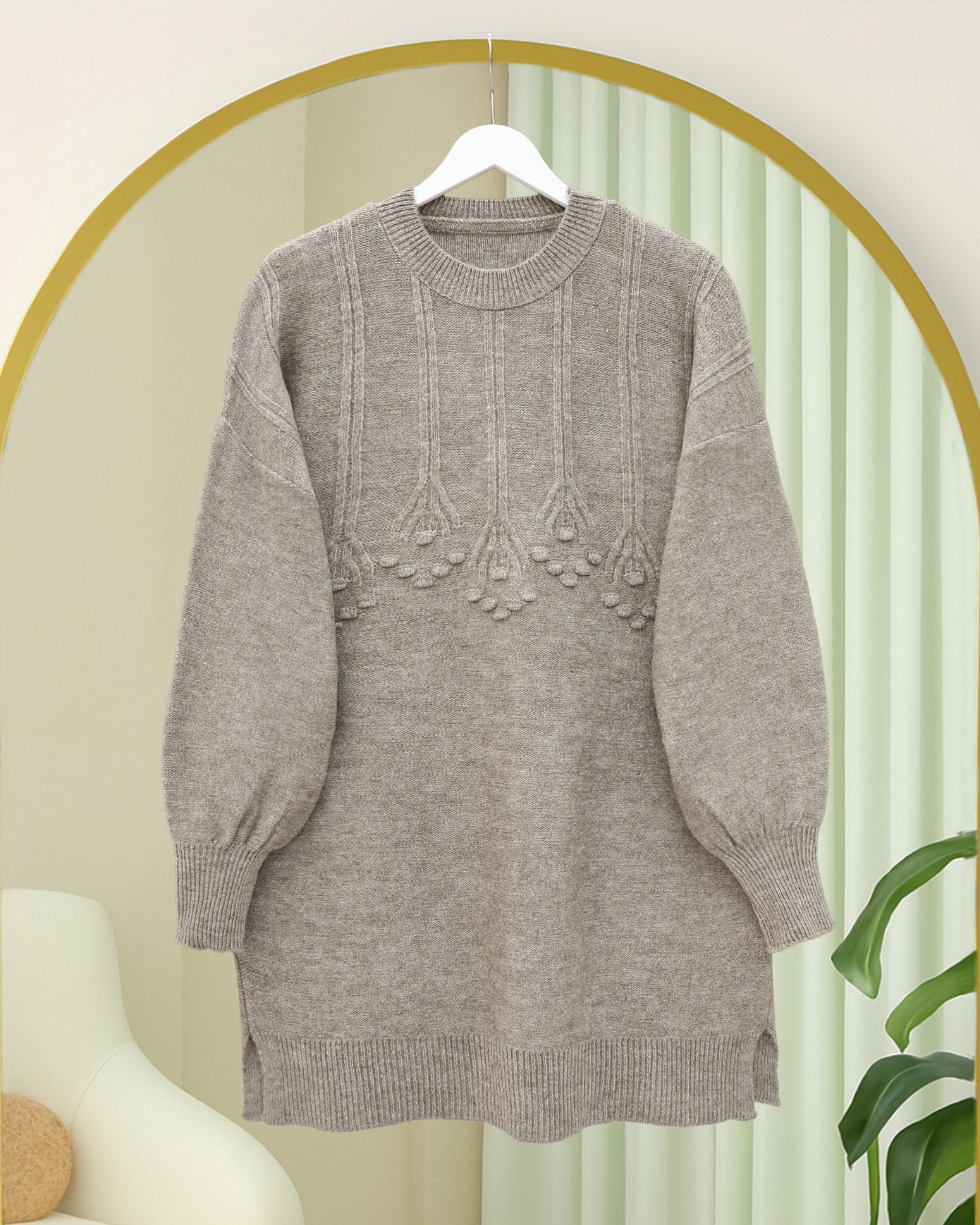 Şerit Ve Ponpon Detaylı Yuvarlak Yaka Yumoş Triko Tunik -Toprak-Toprak