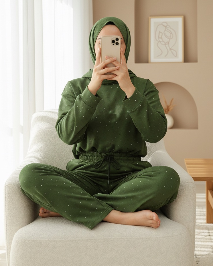 Serpme Taş Detaylı Pantolonlu Oysho Takım -Koyu Yeşil-Koyu Yeşil