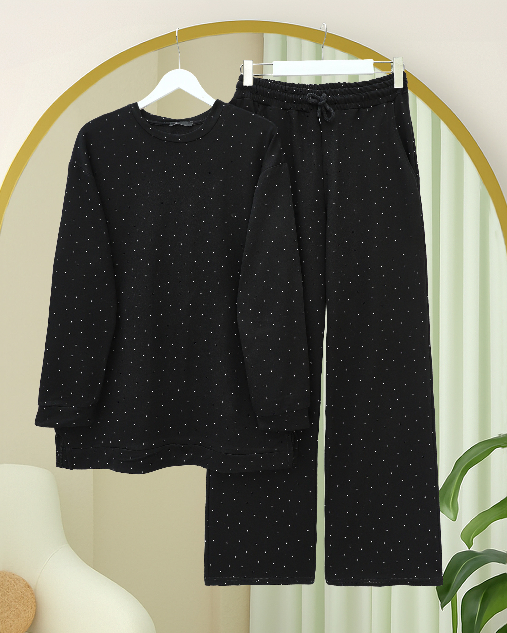 Serpme Taş Detaylı Pantolonlu Oysho Takım -Siyah-siyah