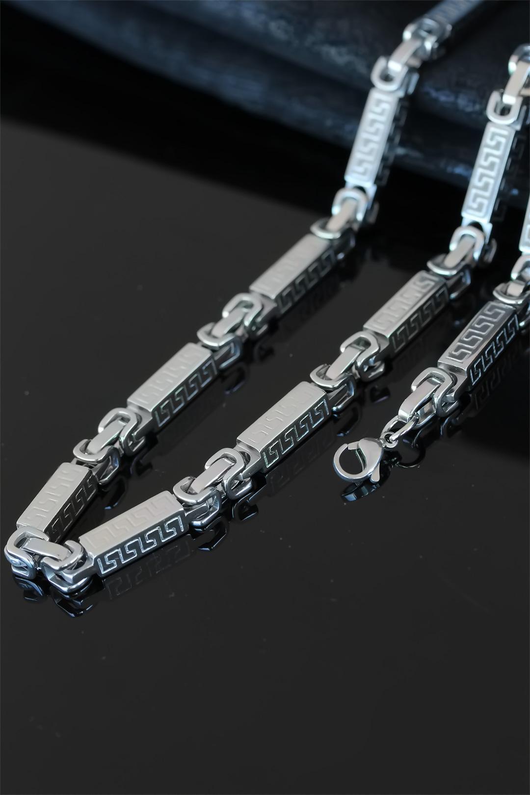 Silver Renkli Kalın Çelik Erkek Kolye-Gümüş